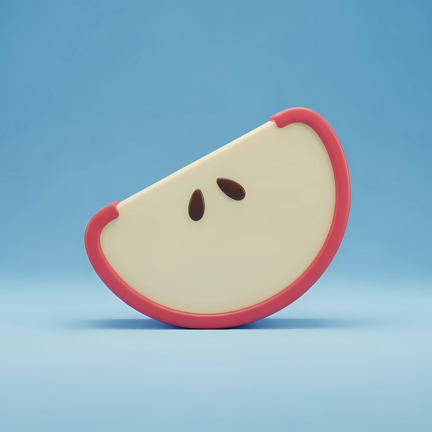 Minimalist 3D apple slice with red peel and seeds on a blue background, perfect for modern design or healthy lifestyle themes.