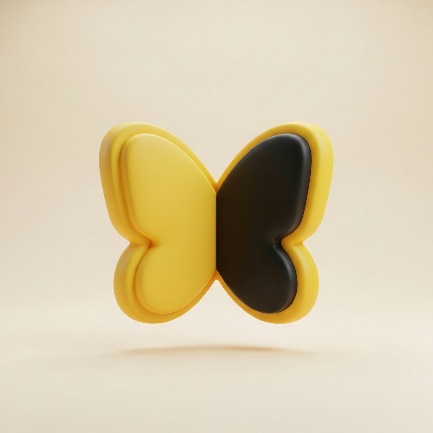 A 3D-rendered butterfly with yellow and black wings, floating against a soft beige background.