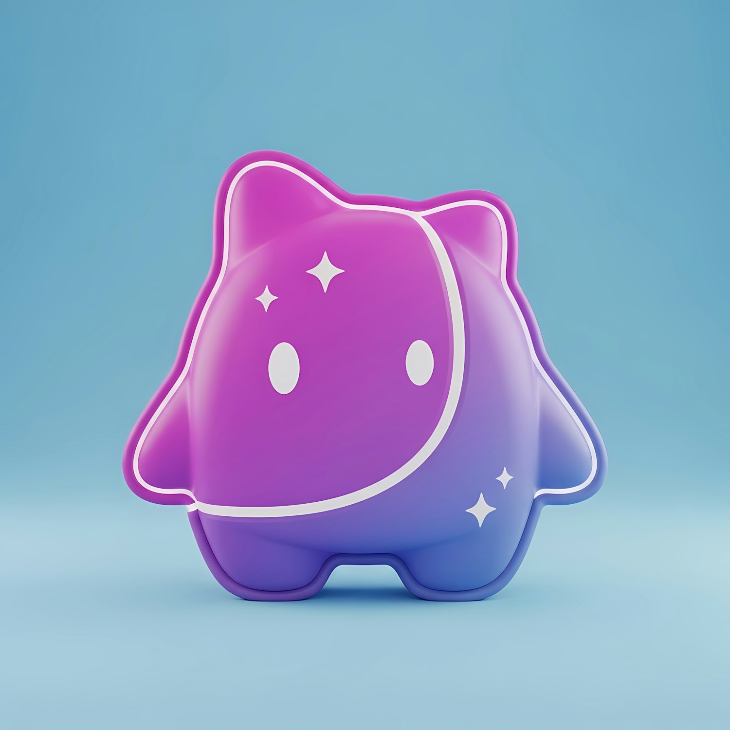Adorable 3D character with a purple-to-blue gradient and star accents, set against a light blue background. Perfect for creative projects.