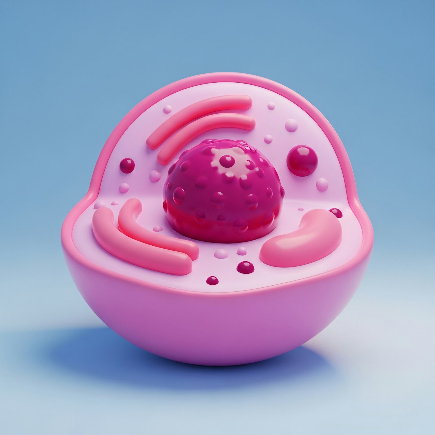 A vibrant 3D model of a cell cross-section with pink and purple organelles, perfect for educational and scientific visuals.