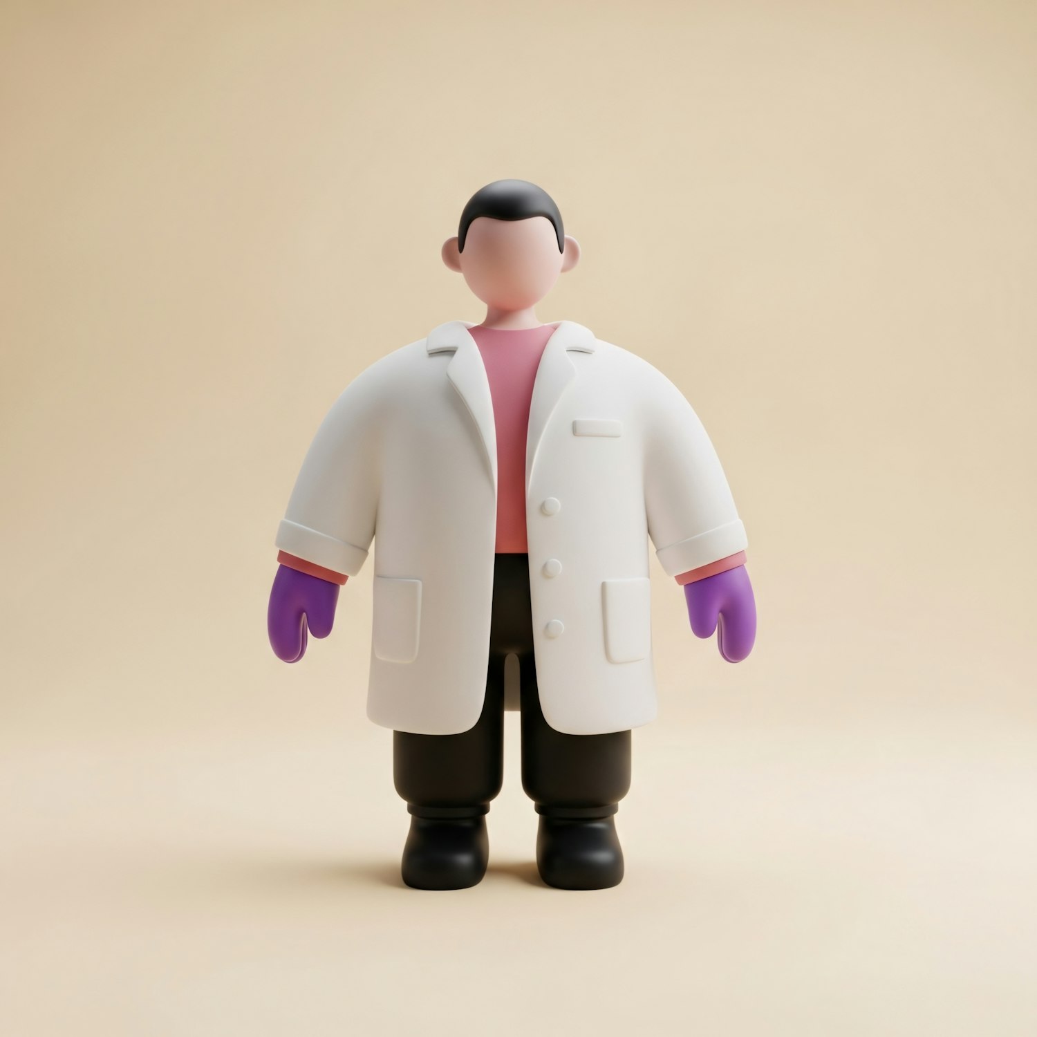 A 3D illustration of a character in a lab coat and gloves, perfect for science or healthcare themes.
