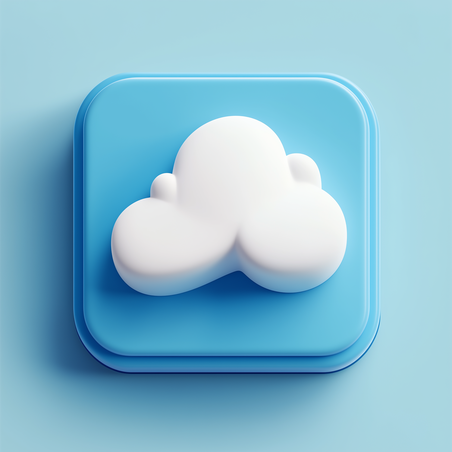 Minimalist 3D cloud icon on a blue square background, perfect for cloud computing or weather themes. Clean and modern design.