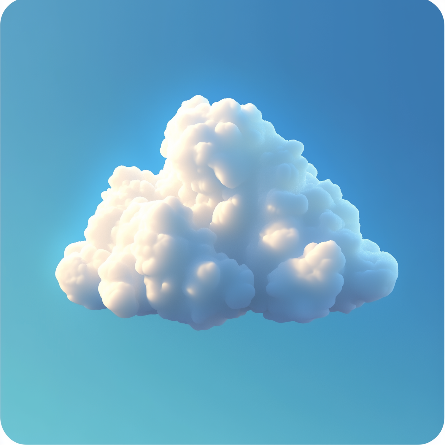 A 3D-rendered fluffy white cloud against a gradient blue sky, showcasing soft textures and luminous lighting for a serene aesthetic.