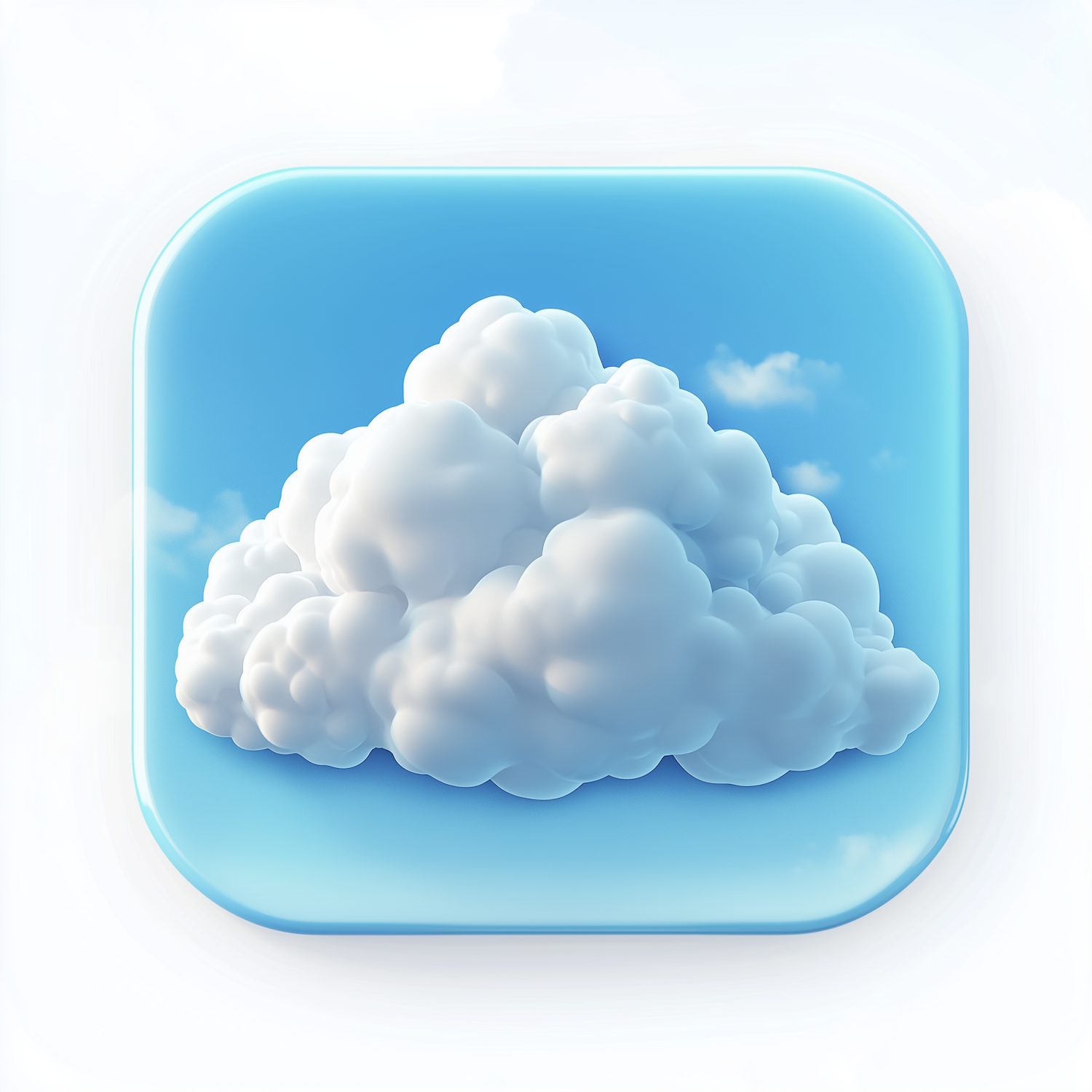 A 3D-rendered fluffy white cloud on a bright blue sky, framed in a rounded square for a sleek, app-icon-like design.