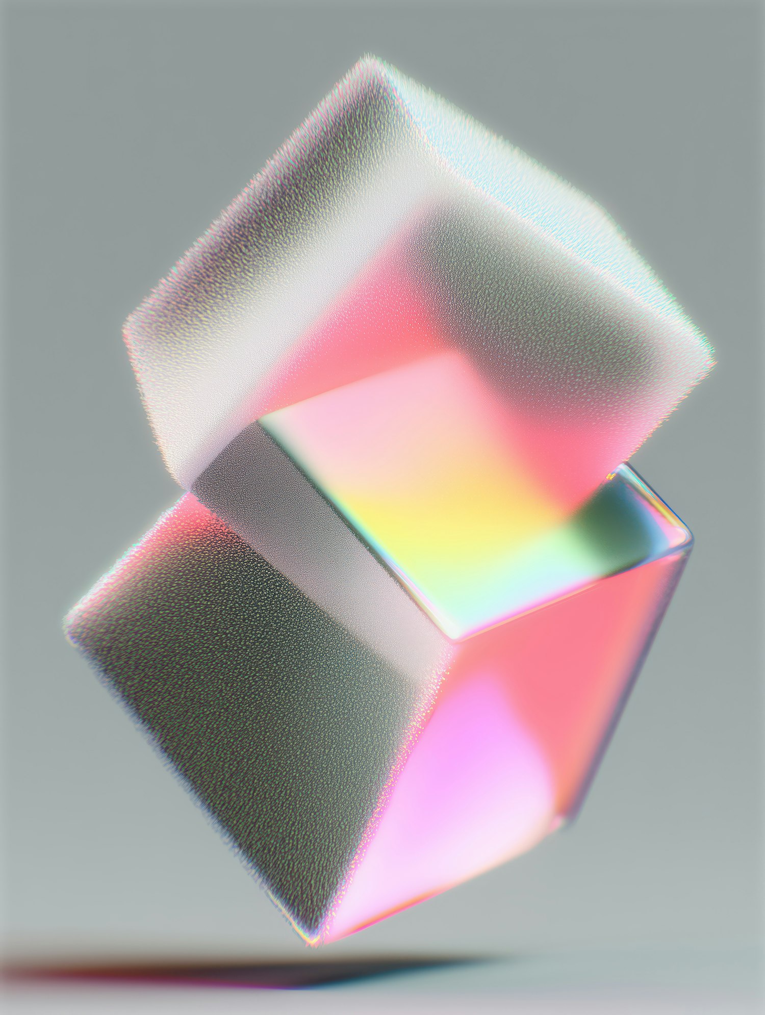 Vibrant 3D-rendered cubes with textured and smooth surfaces, glowing in pink, yellow, and green hues on a gray backdrop.