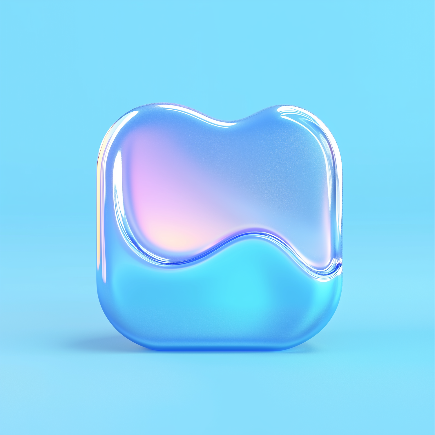Glossy 3D abstract shape with pink, purple, and blue gradients on a light blue background, creating a futuristic and minimal vibe.