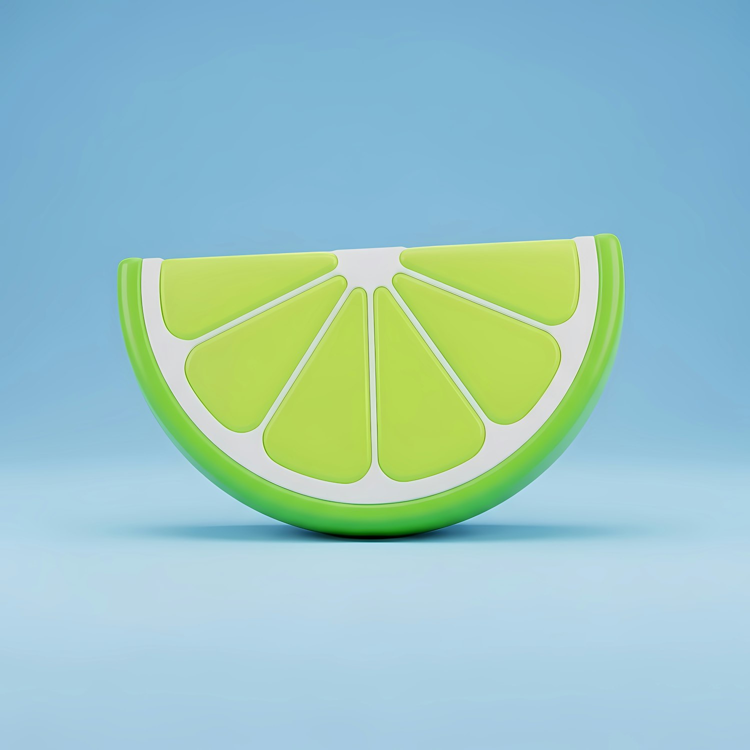 Bright 3D lime slice with vivid green and white details on a soft blue background, perfect for fresh and modern design themes.