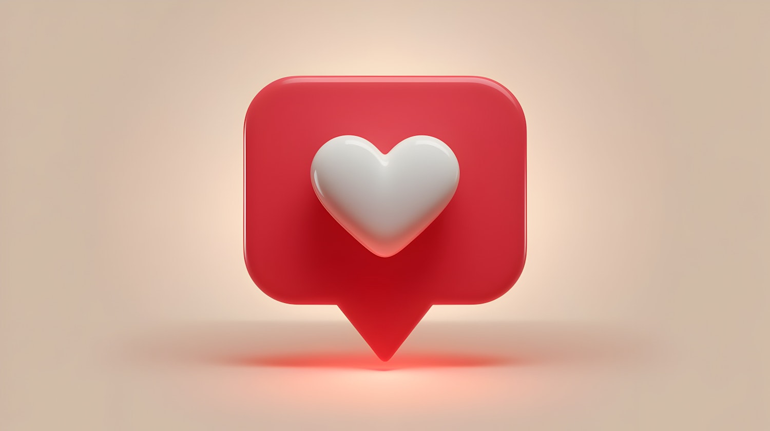 3D-rendered red notification bubble with a white heart icon, symbolizing a social media like, on a soft beige gradient background.