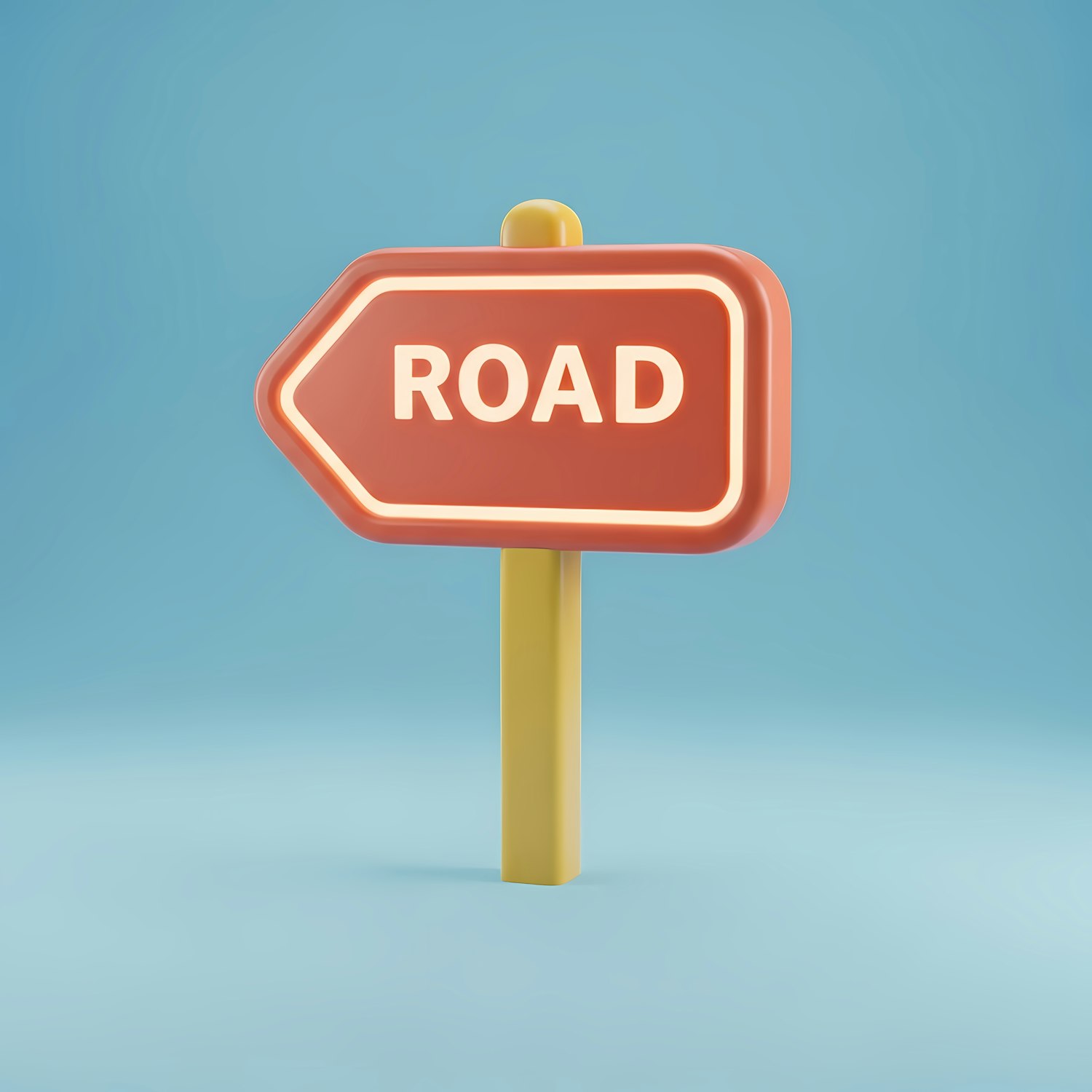 3D-rendered road sign with a red arrow and 'ROAD' text, set against a clean blue background. Perfect for navigation or travel themes.