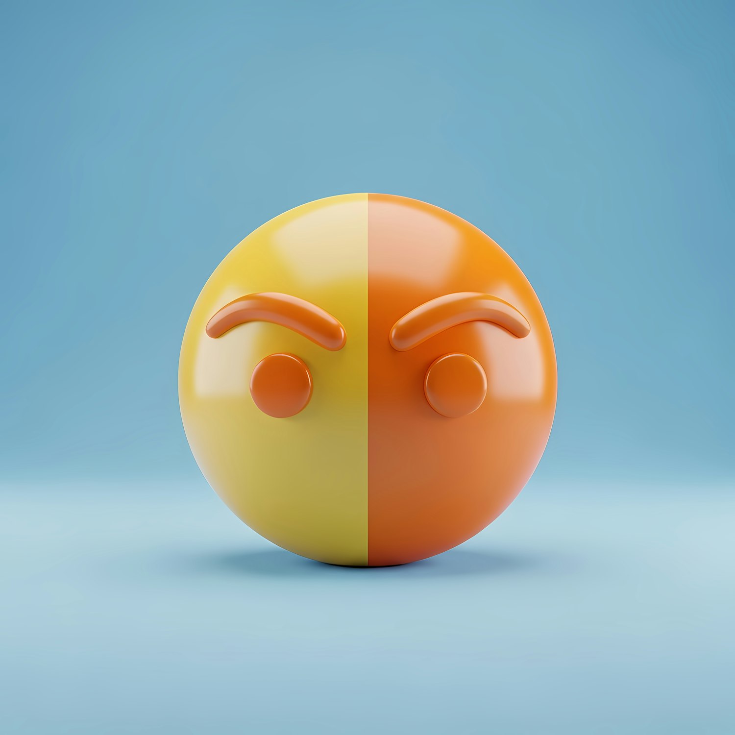 A vibrant 3D emoji with a split yellow and orange design, set against a clean blue background. Perfect for modern and playful themes.