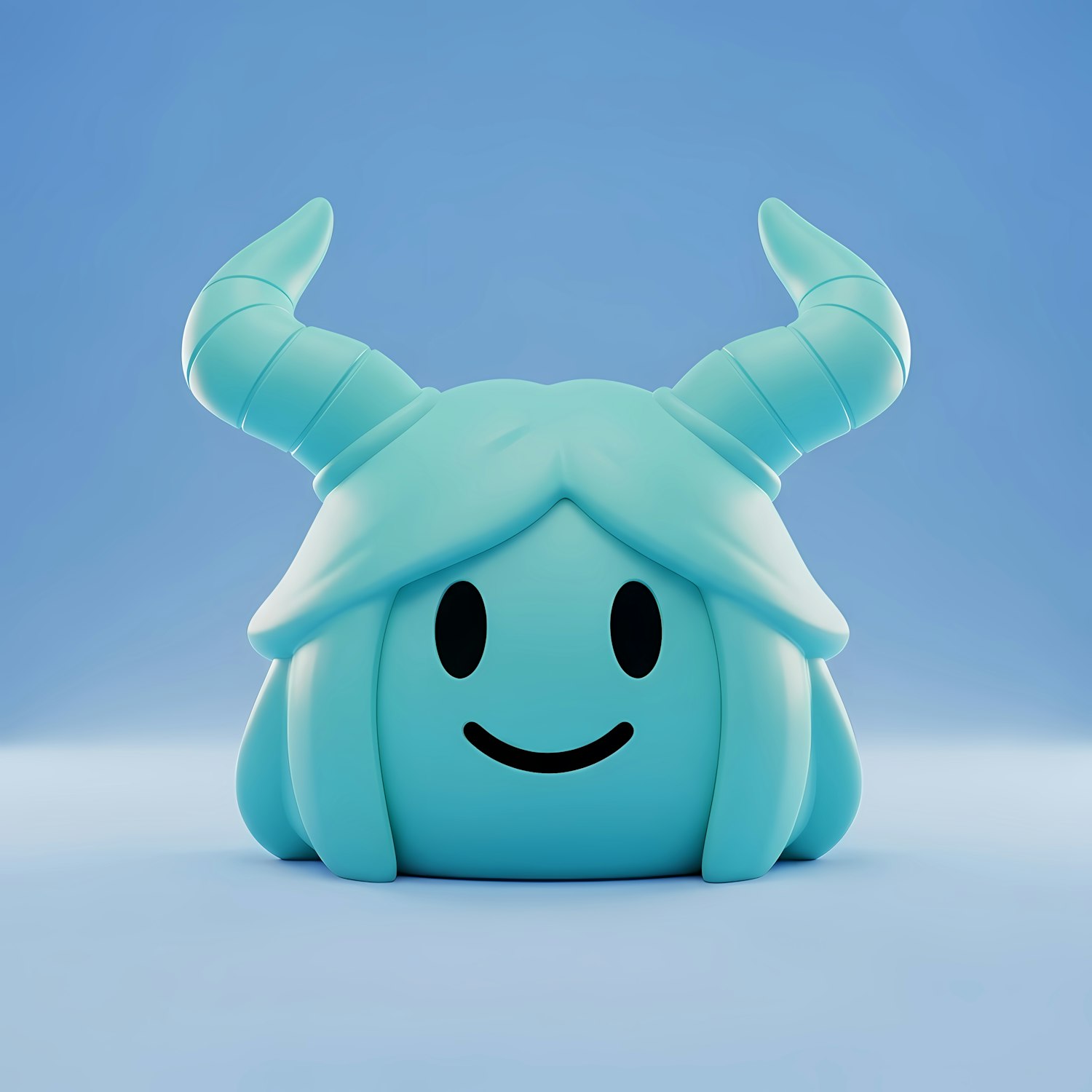 Adorable 3D character with teal horns and a smiling face, set against a soft blue gradient background. Perfect for creative projects.