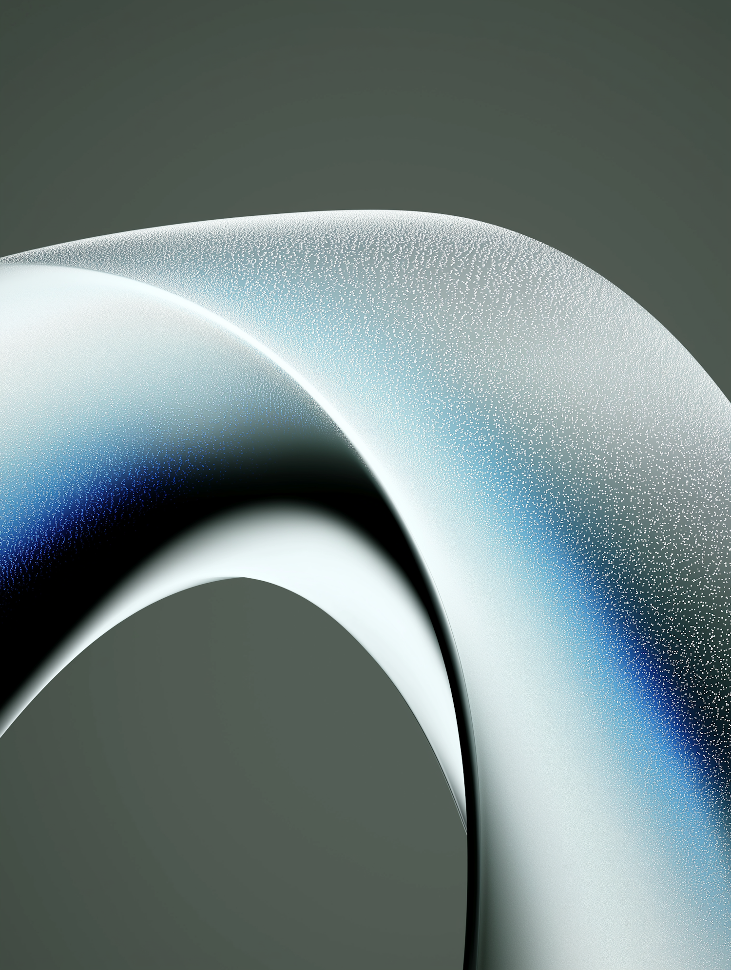 Abstract design with smooth curves, blue and white gradients, and a speckled texture on a gray background.