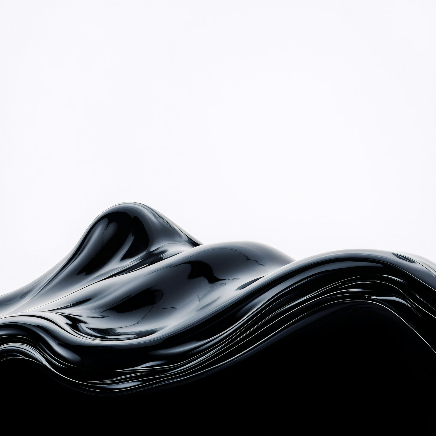 Abstract black glossy shapes with smooth curves against a white background, creating a modern and minimalist aesthetic.
