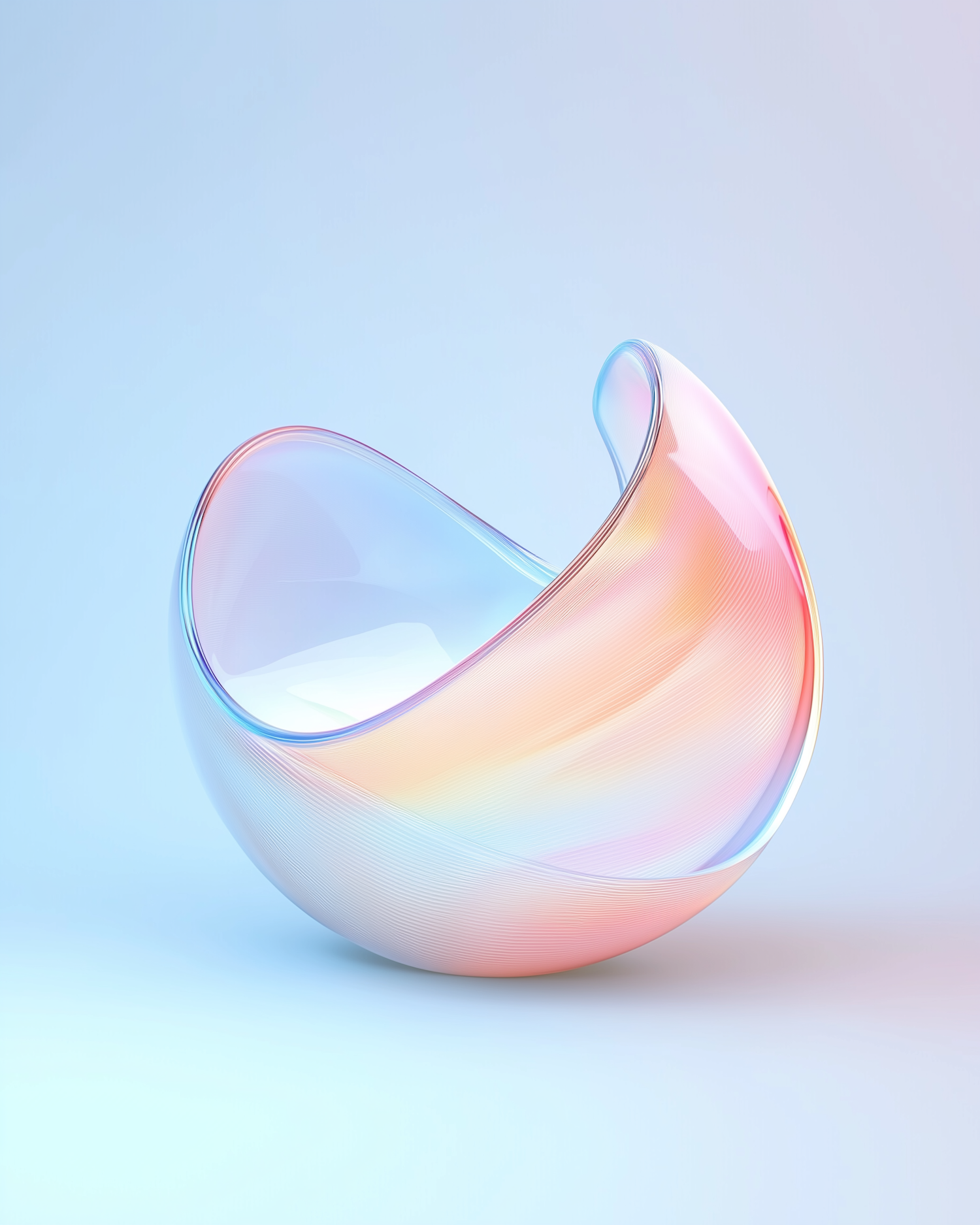 A stunning 3D abstract sculpture with pastel gradients and a glass-like finish, set against a soft, minimal background.