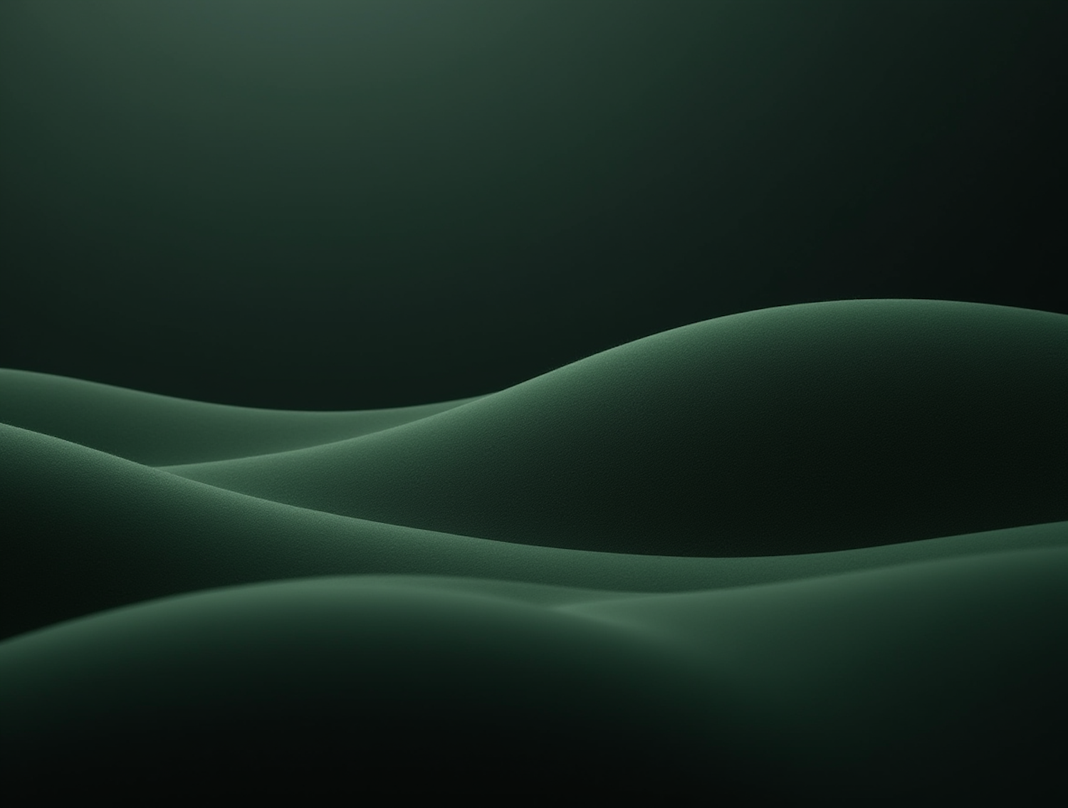 Abstract green waves or dunes with soft lighting and smooth contours, creating a serene and minimalistic visual effect.