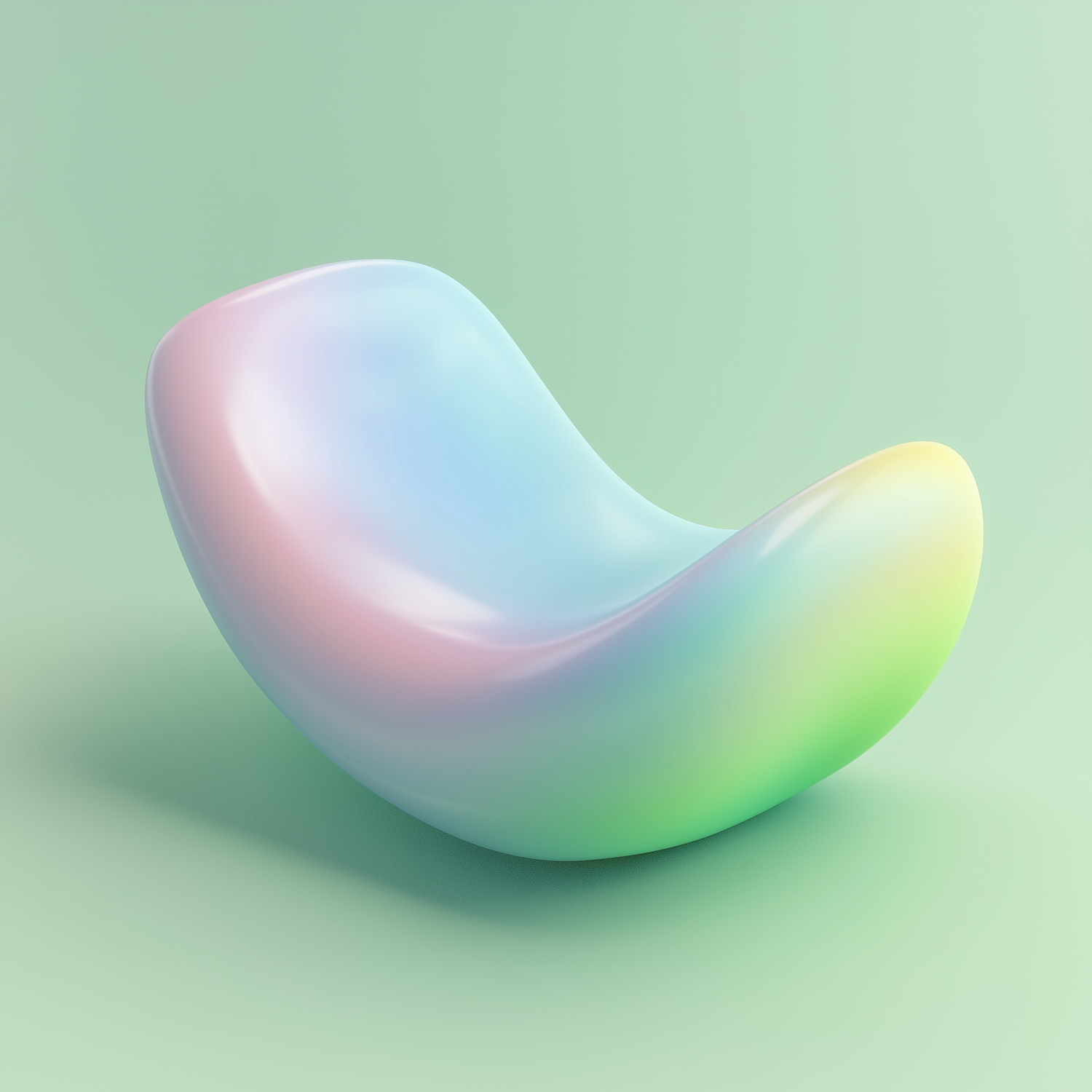 A glossy, pastel-colored abstract chair with a curvy design on a mint-green background, blending modern art and furniture aesthetics.