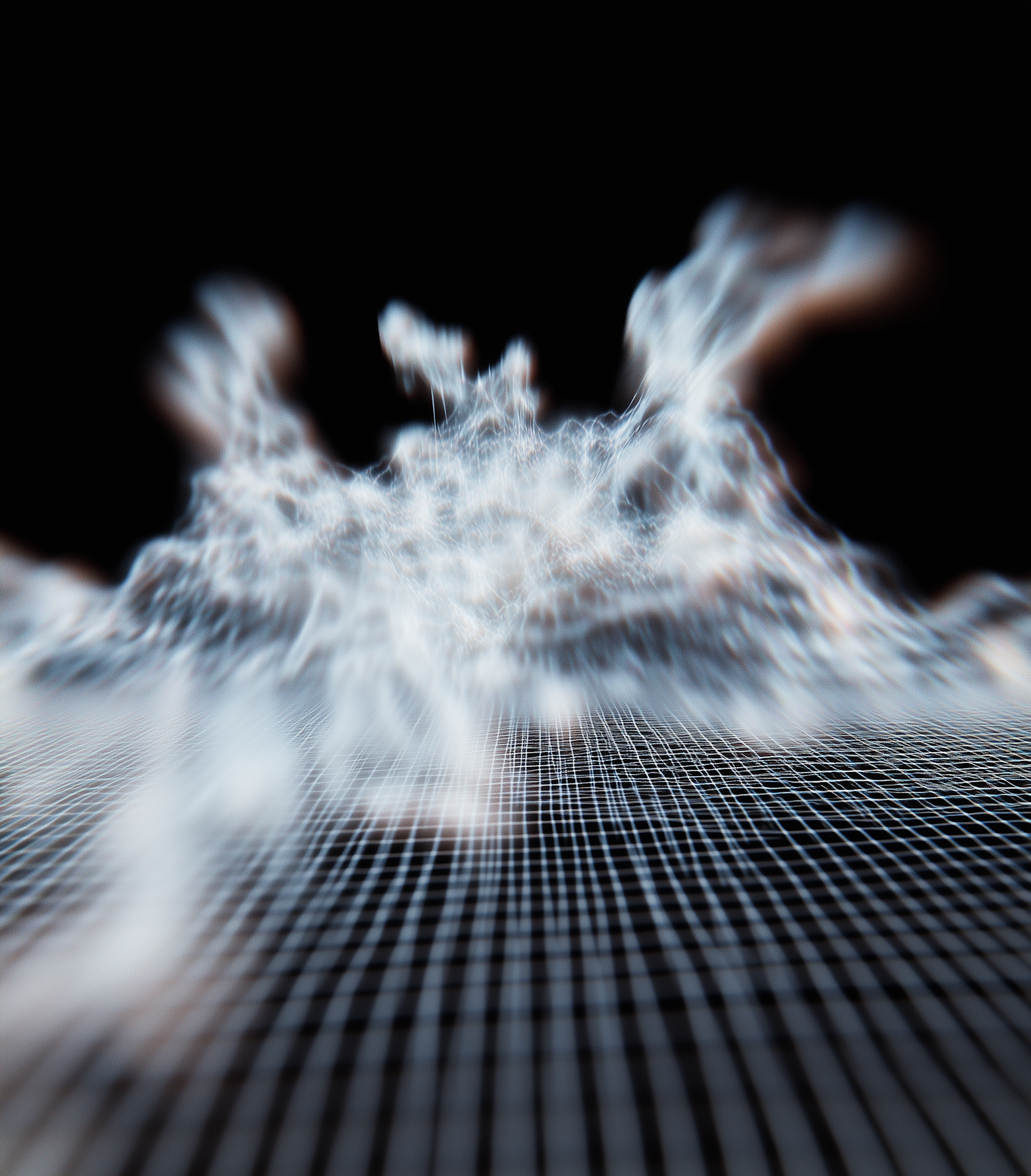 Abstract visualization of a glowing mist over a grid, evoking futuristic and technological themes with a dynamic, ethereal feel.