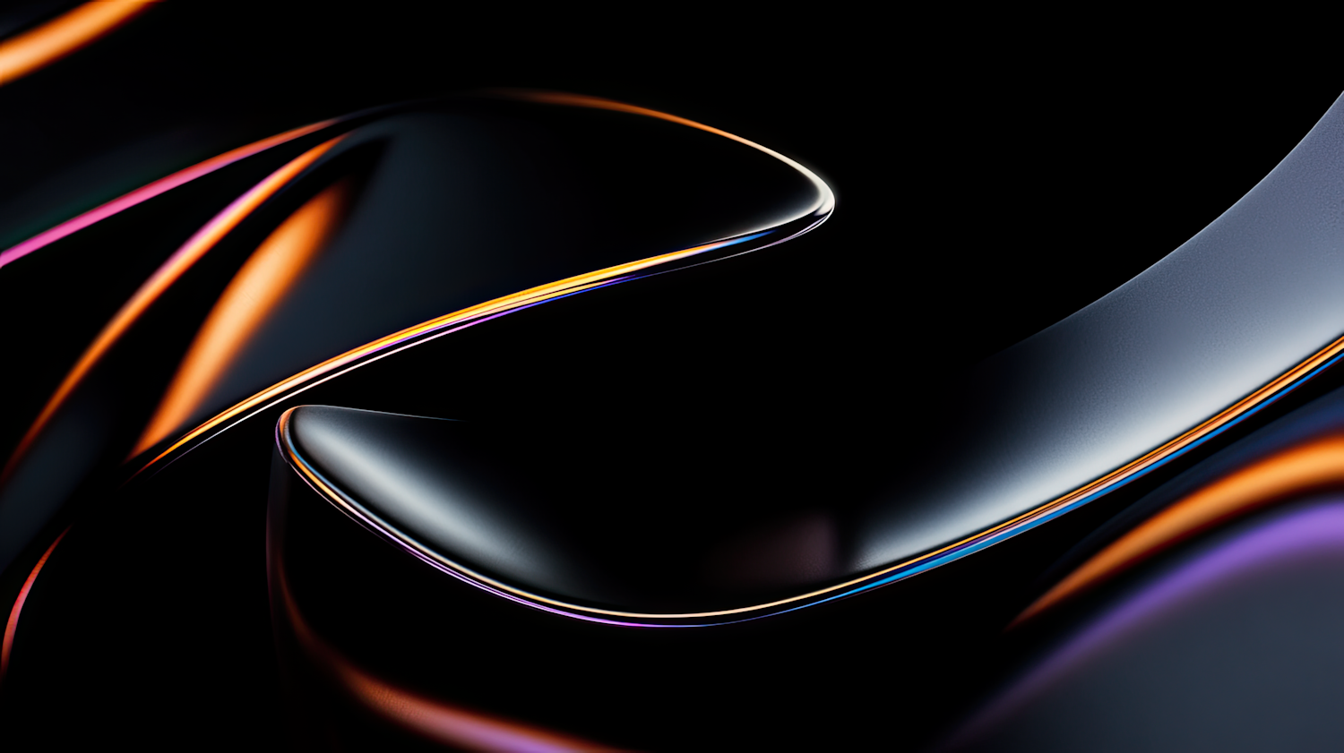 Abstract curves with vibrant orange, purple, and yellow highlights on a dark background, creating a sleek and futuristic design.