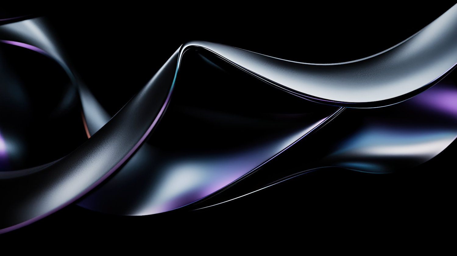 Abstract metallic ribbons with purple and blue gradients twist gracefully on a black background, creating a sleek and futuristic vibe.