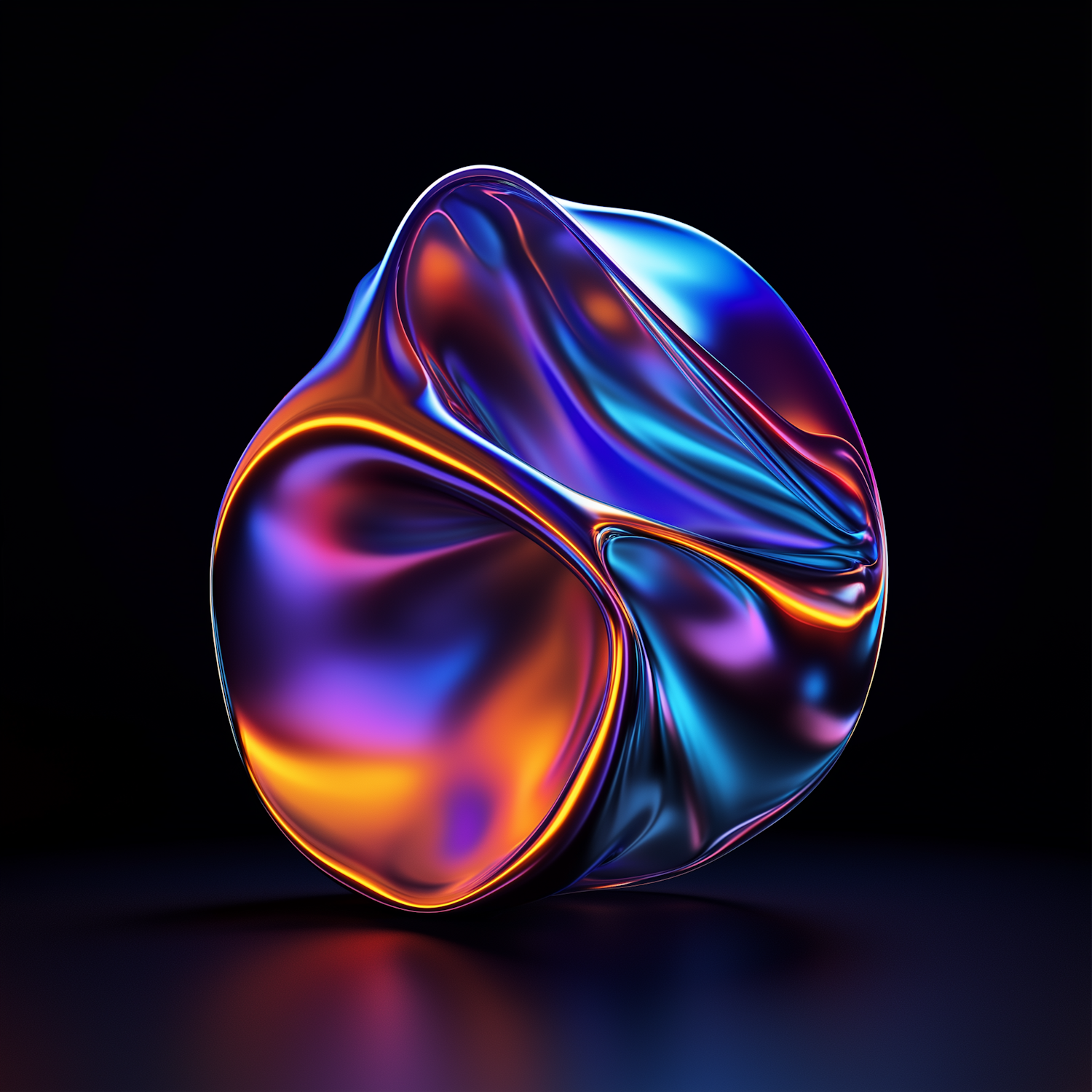 A stunning 3D abstract metallic object with glowing blue, purple, and orange hues on a black background. Perfect for modern art lovers.