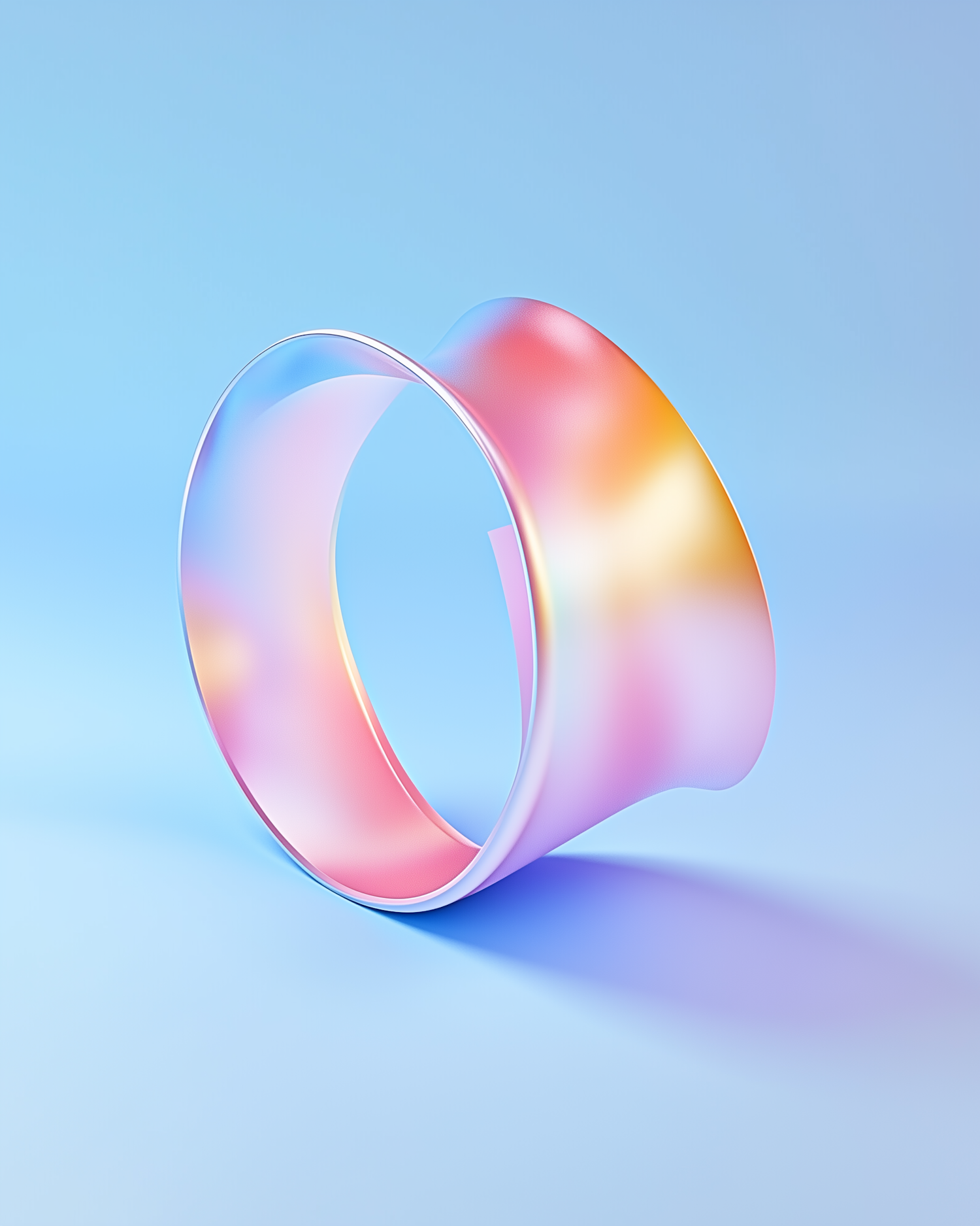 A colorful 3D Mobius strip with pastel gradients on a soft blue background, creating a modern and abstract visual aesthetic.