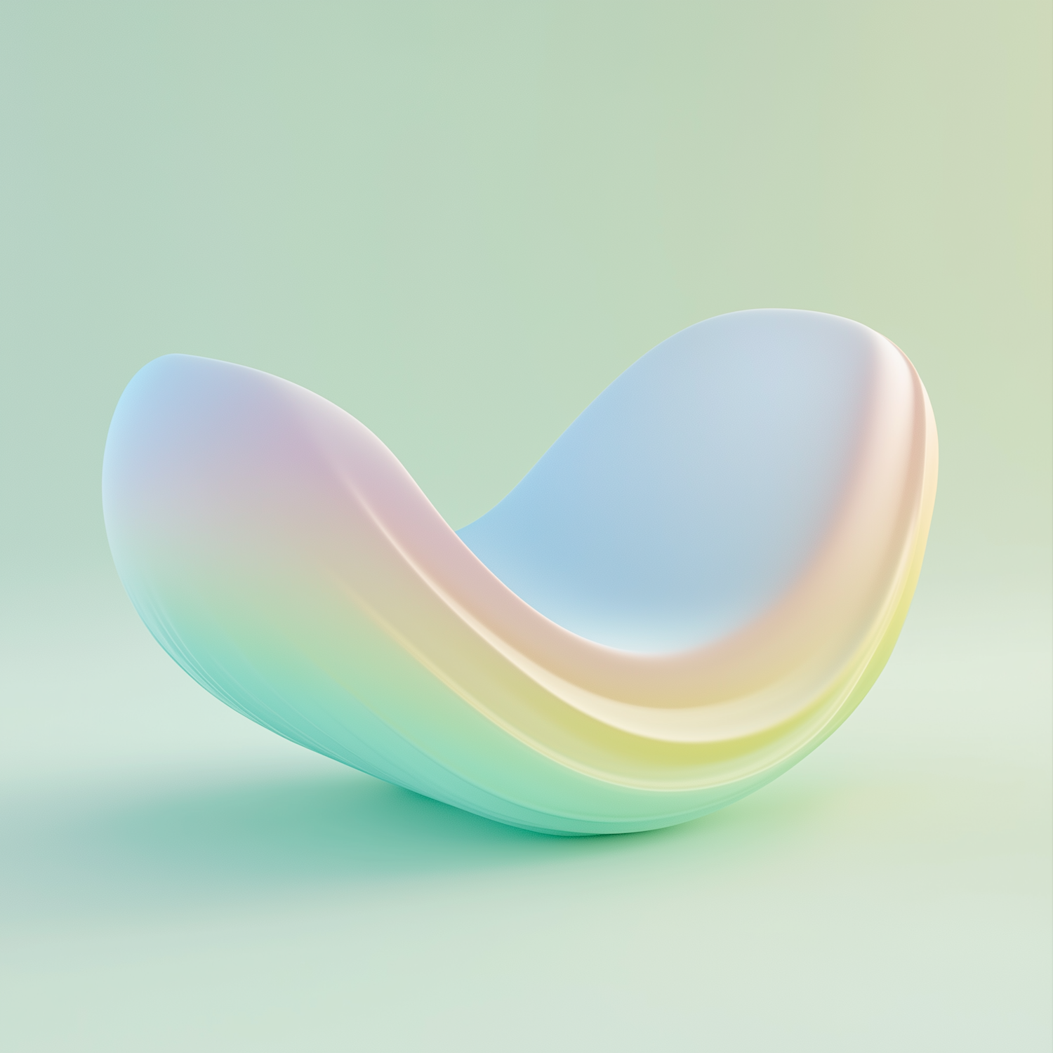 A sleek, pastel-gradient chair with a wave-like design on a light green background, blending modern art and furniture design.