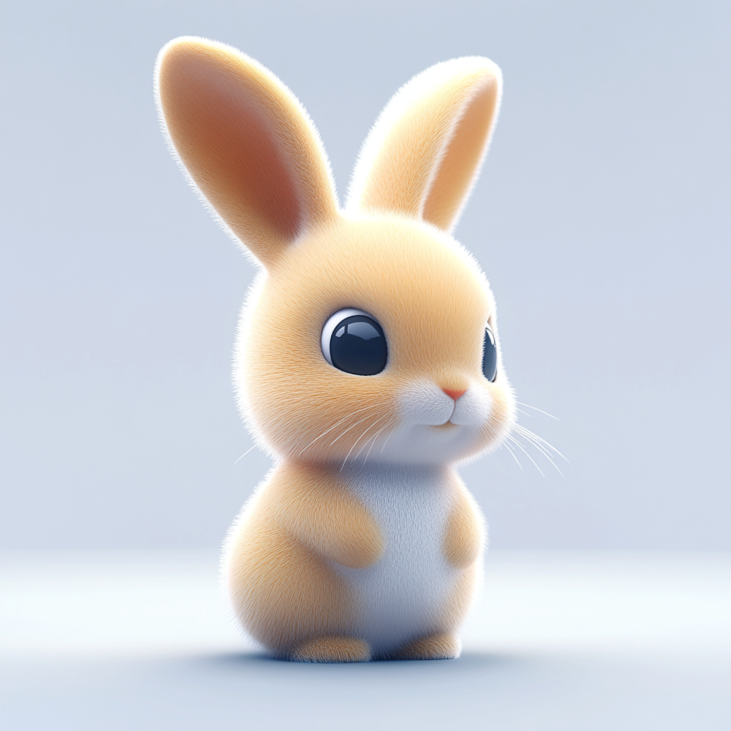 Adorable digital illustration of a fluffy bunny with big black eyes and a light orange coat, set against a soft gradient background.