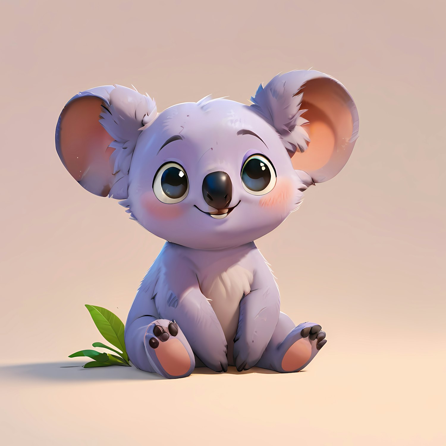 Adorable cartoon koala with big eyes and lavender fur, sitting with a joyful expression. Perfect for kids and animal lovers.