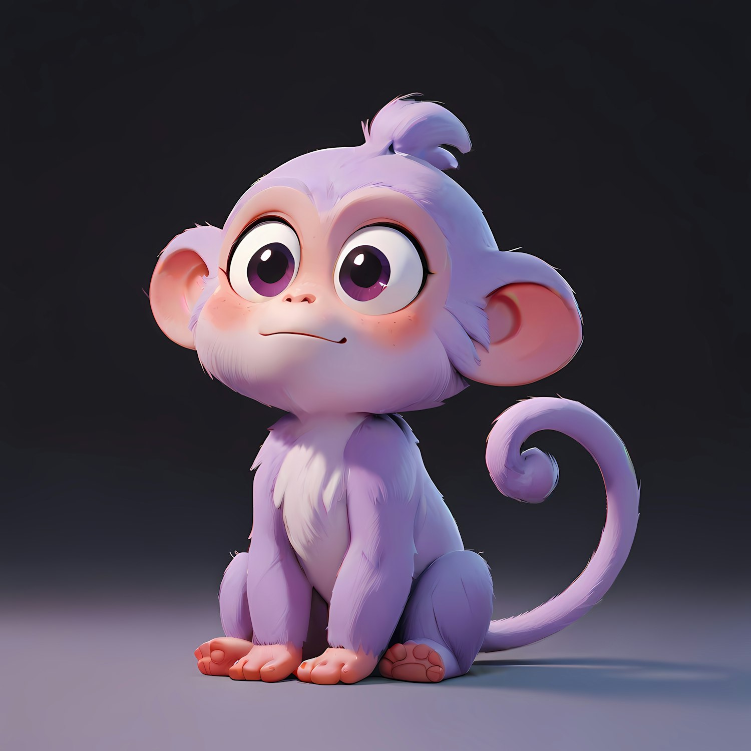 Adorable cartoon monkey with purple fur and big eyes, sitting with a curious expression. Perfect for children's media or playful designs.