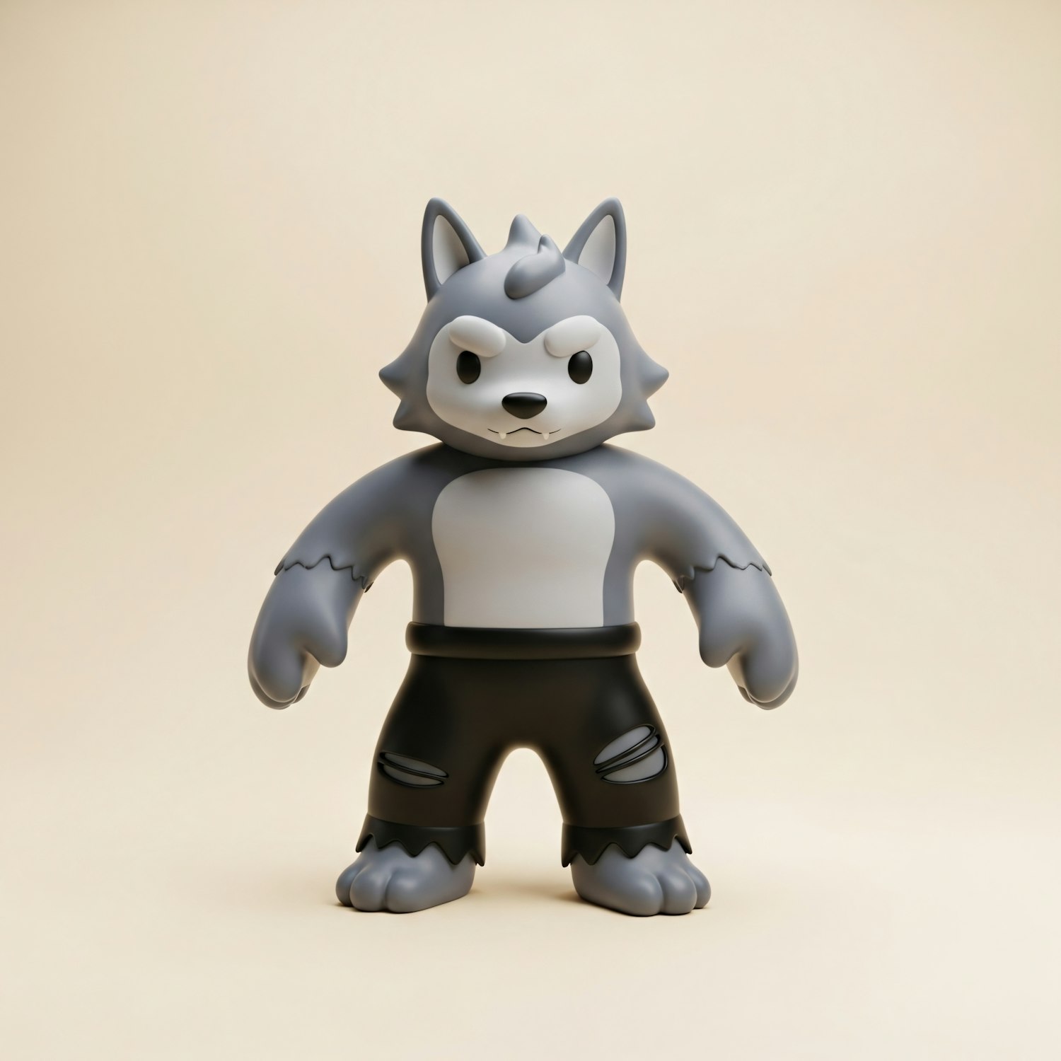 A cute and fierce anthropomorphic wolf figure in tattered pants, perfect for collectors or fans of unique character designs.