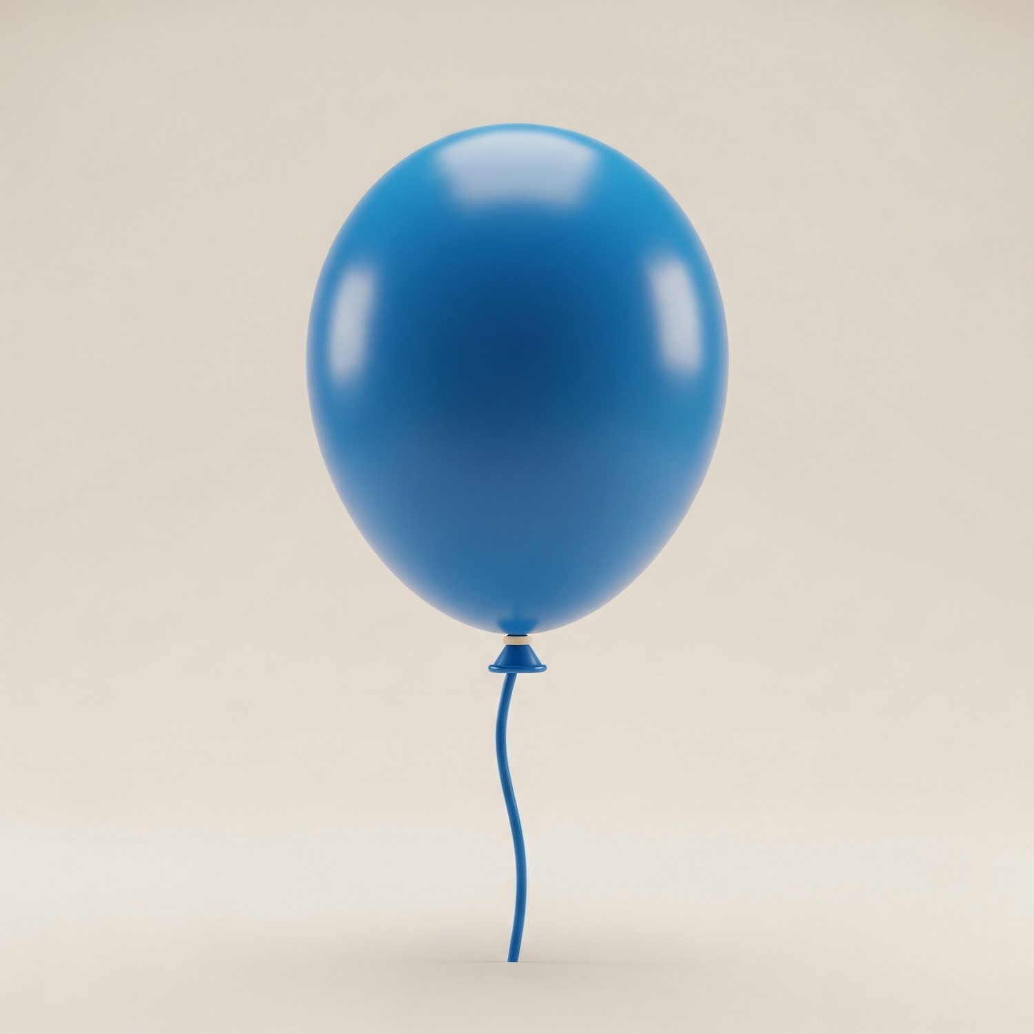 A vibrant blue balloon with a glossy finish floats against a neutral beige background, creating a simple yet striking visual.