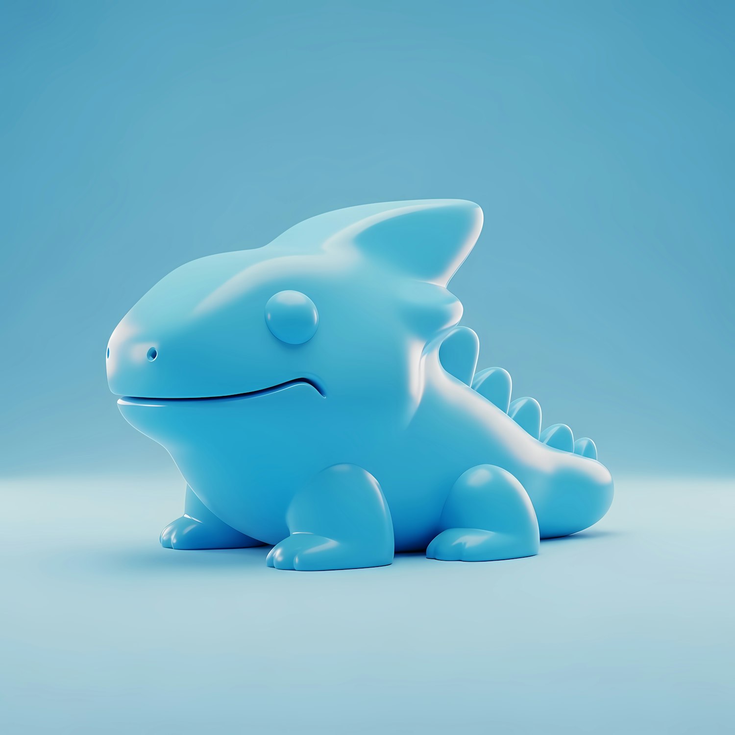 Adorable blue 3D dragon-like creature with a glossy finish, set against a soft blue gradient background. Perfect for cute design inspiration.