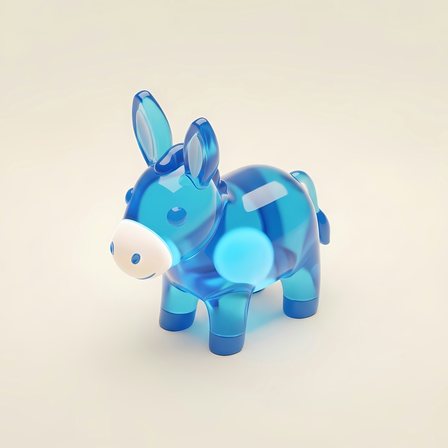 A cute 3D-rendered blue translucent donkey figurine with a glossy finish, set against a neutral background.