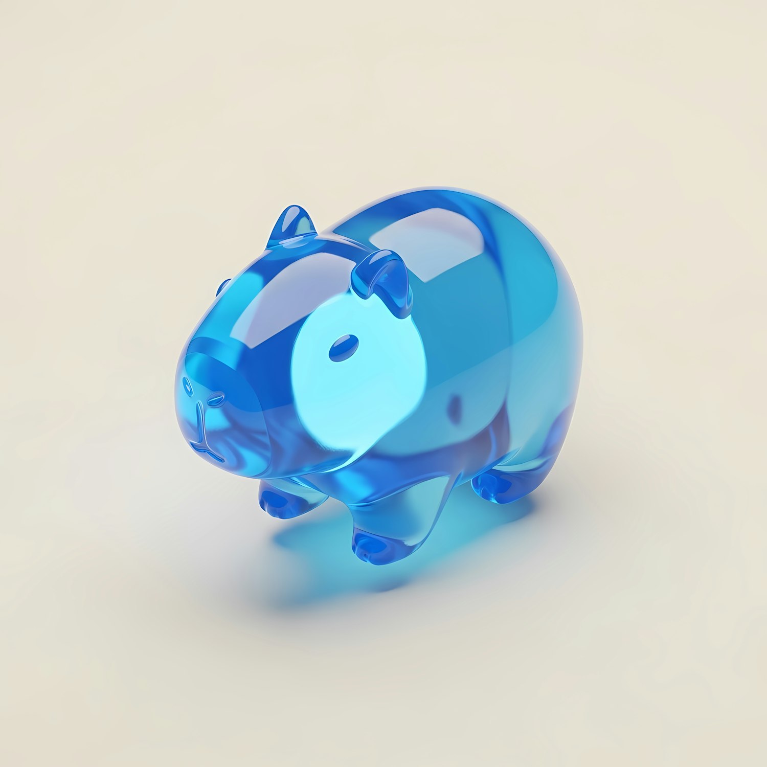 A translucent blue 3D guinea pig figurine with a glossy finish, set against a neutral beige background.
