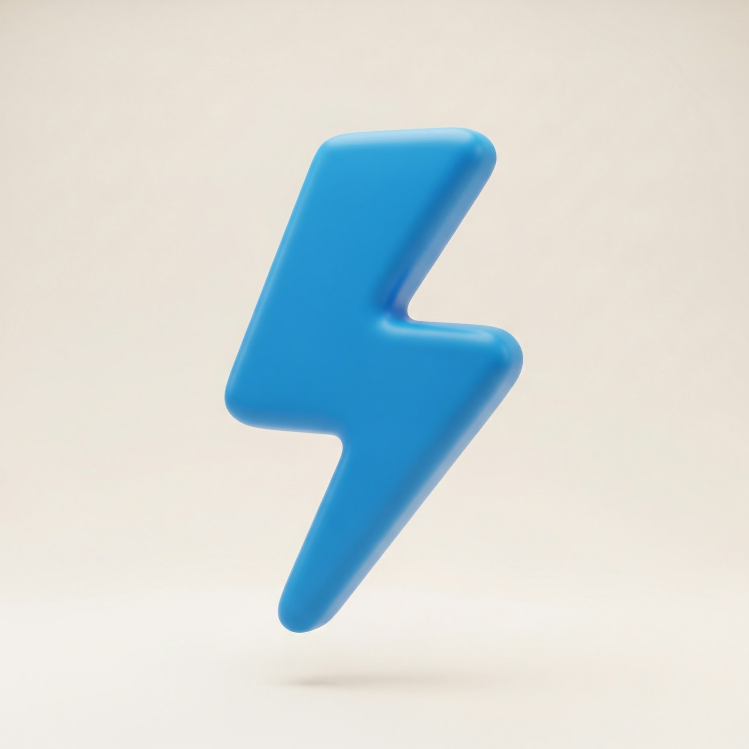 A sleek 3D blue lightning bolt on a neutral background, showcasing a modern and dynamic design.