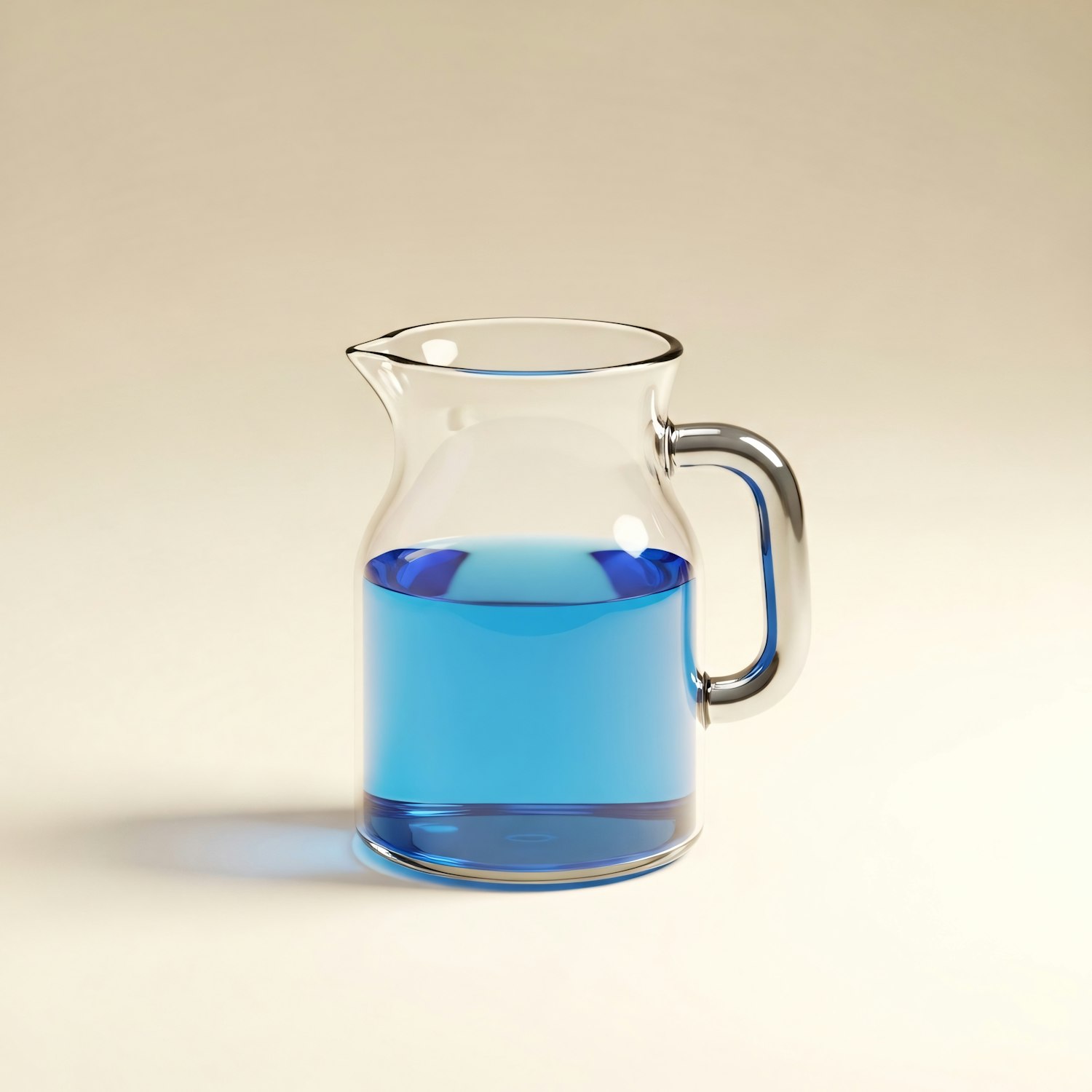 A clear glass pitcher with a vibrant blue liquid against a neutral background, showcasing a clean and minimalistic design.