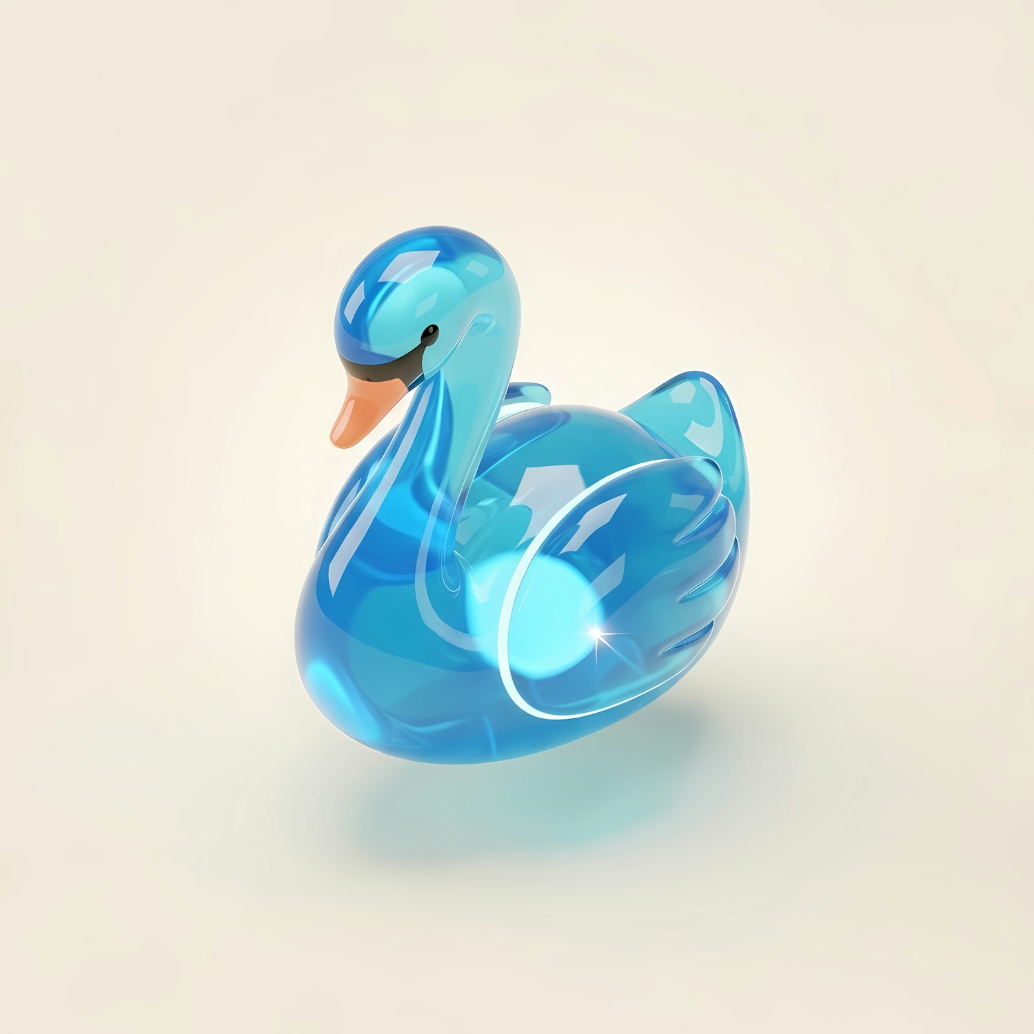 A stunning 3D-rendered blue swan figurine with a glossy finish, set against a soft beige background, showcasing its elegant design.