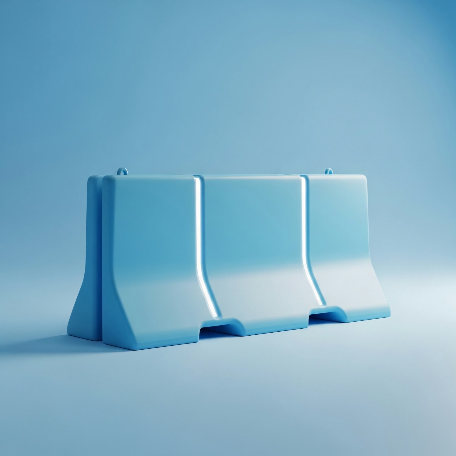 A blue plastic traffic barrier with a smooth, glossy finish against a matching blue background, showcasing a clean and modern design.