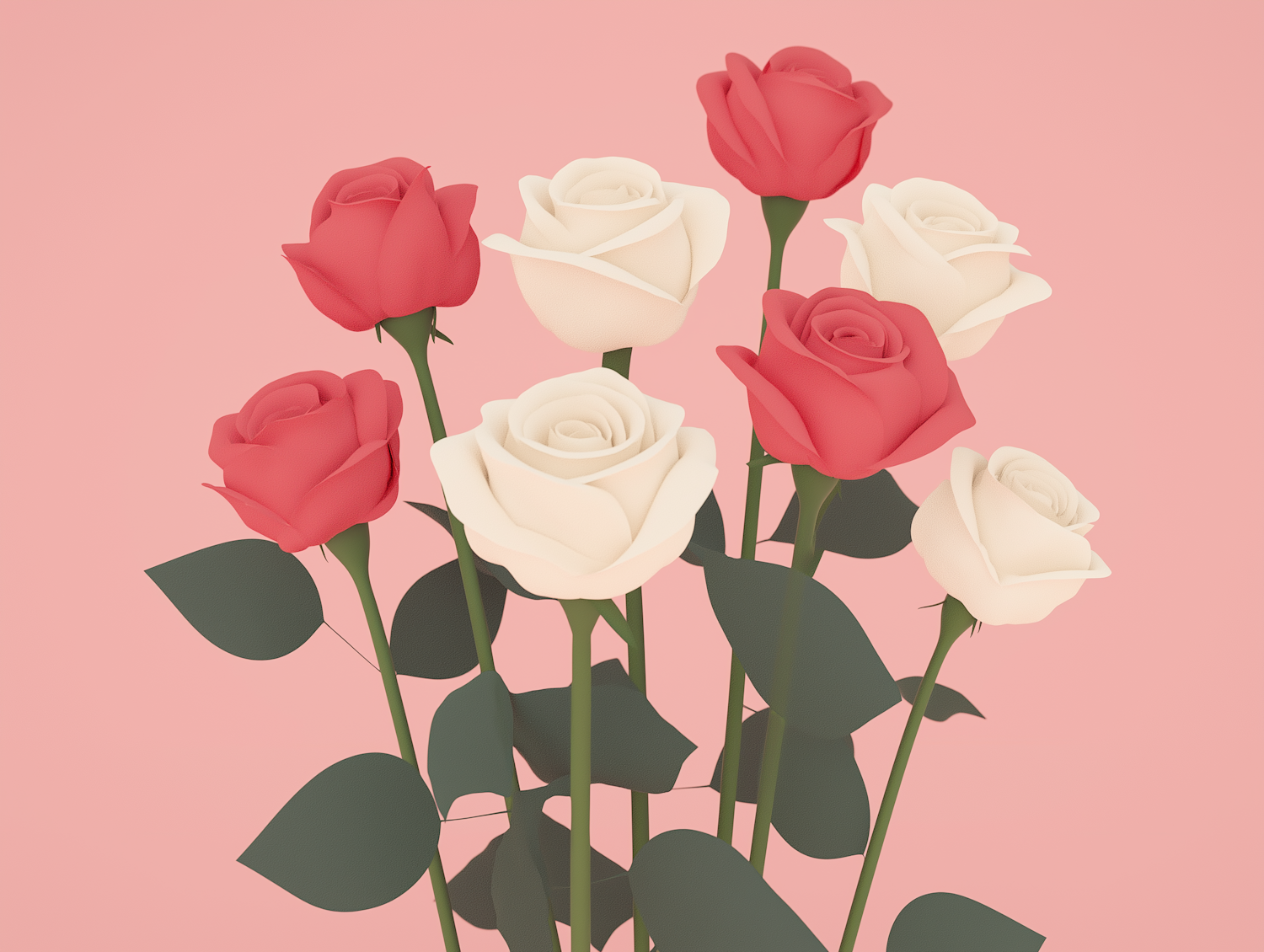 A beautiful bouquet of red and white roses against a soft pink background, creating a romantic and elegant floral arrangement.