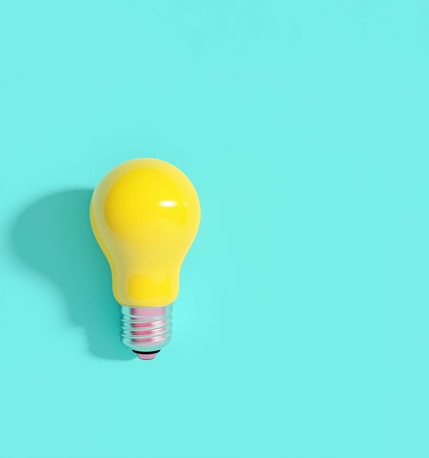 Bright yellow light bulb on a turquoise background, creating a bold and modern aesthetic with vibrant color contrast.