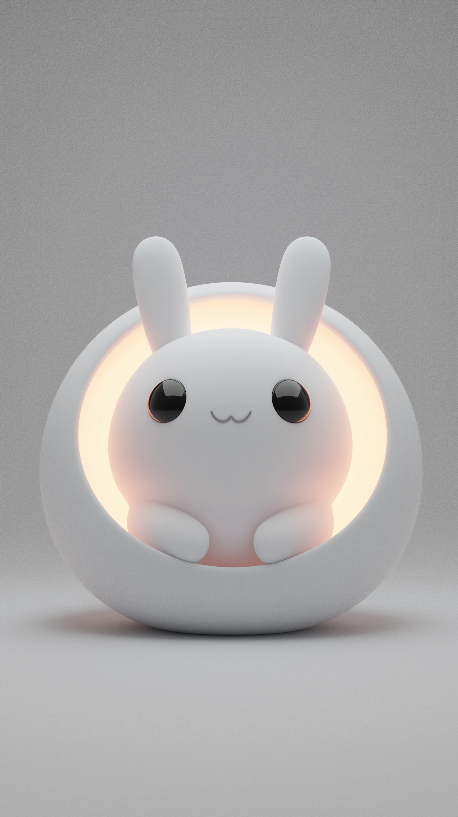 Adorable 3D bunny-shaped lamp with a soft glow, glossy black eyes, and a minimalist design perfect for cozy or modern spaces.