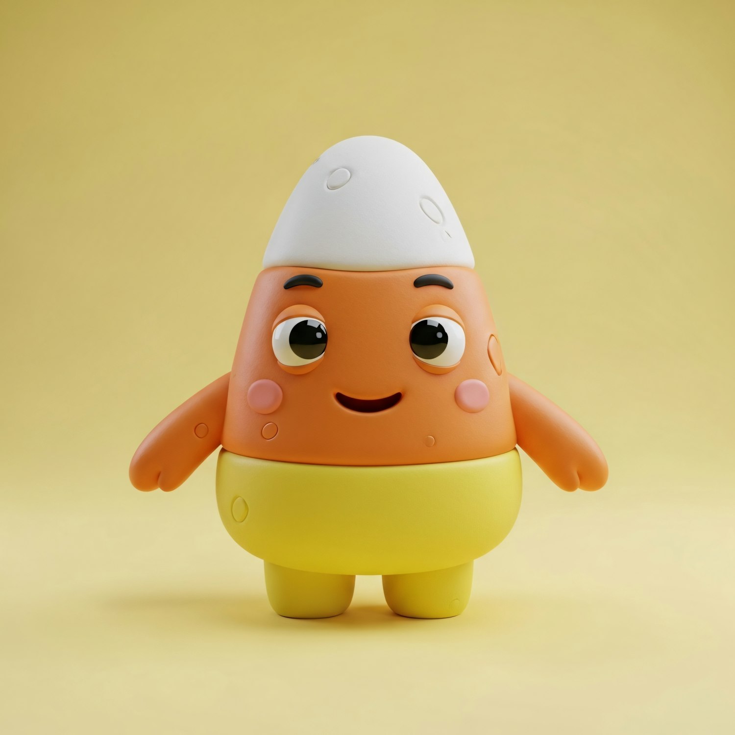 Adorable candy corn-inspired character with a cheerful face and vibrant colors, perfect for a playful and fun design.