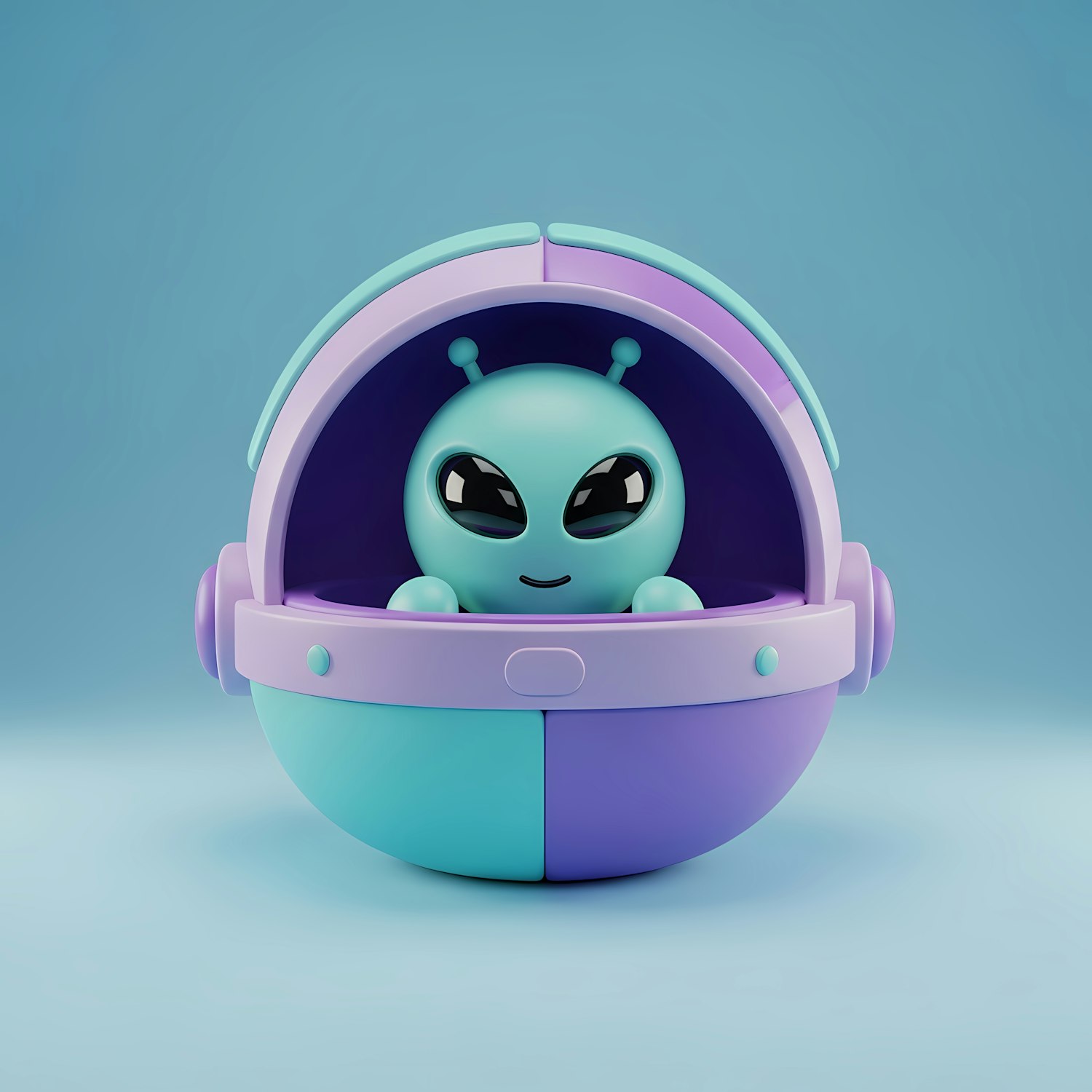 Adorable alien in a pastel teal and purple pod, perfect for a playful and futuristic vibe. Great for kids' designs or sci-fi themes.