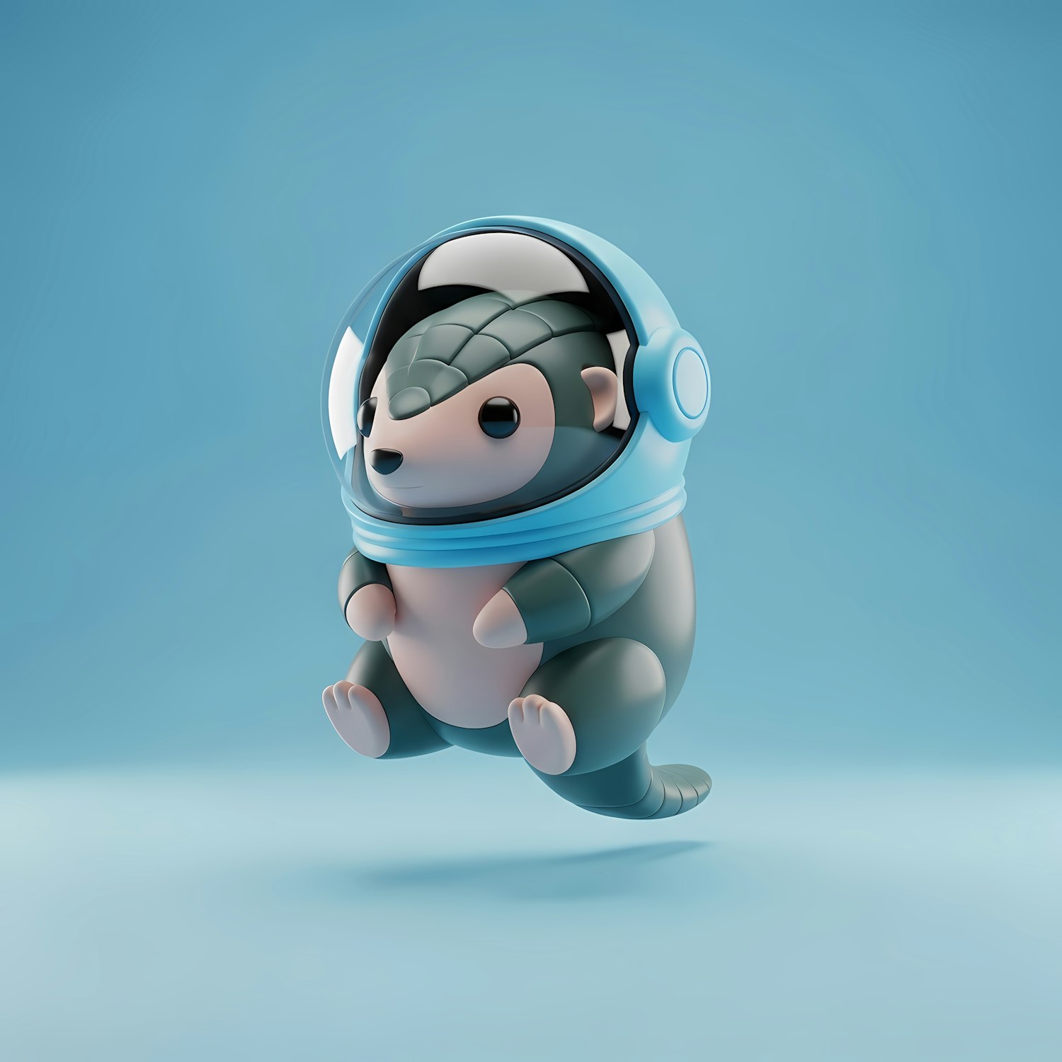 Adorable 3D armadillo in a blue astronaut helmet, floating in a light blue background. Perfect for space-themed or cute character designs.