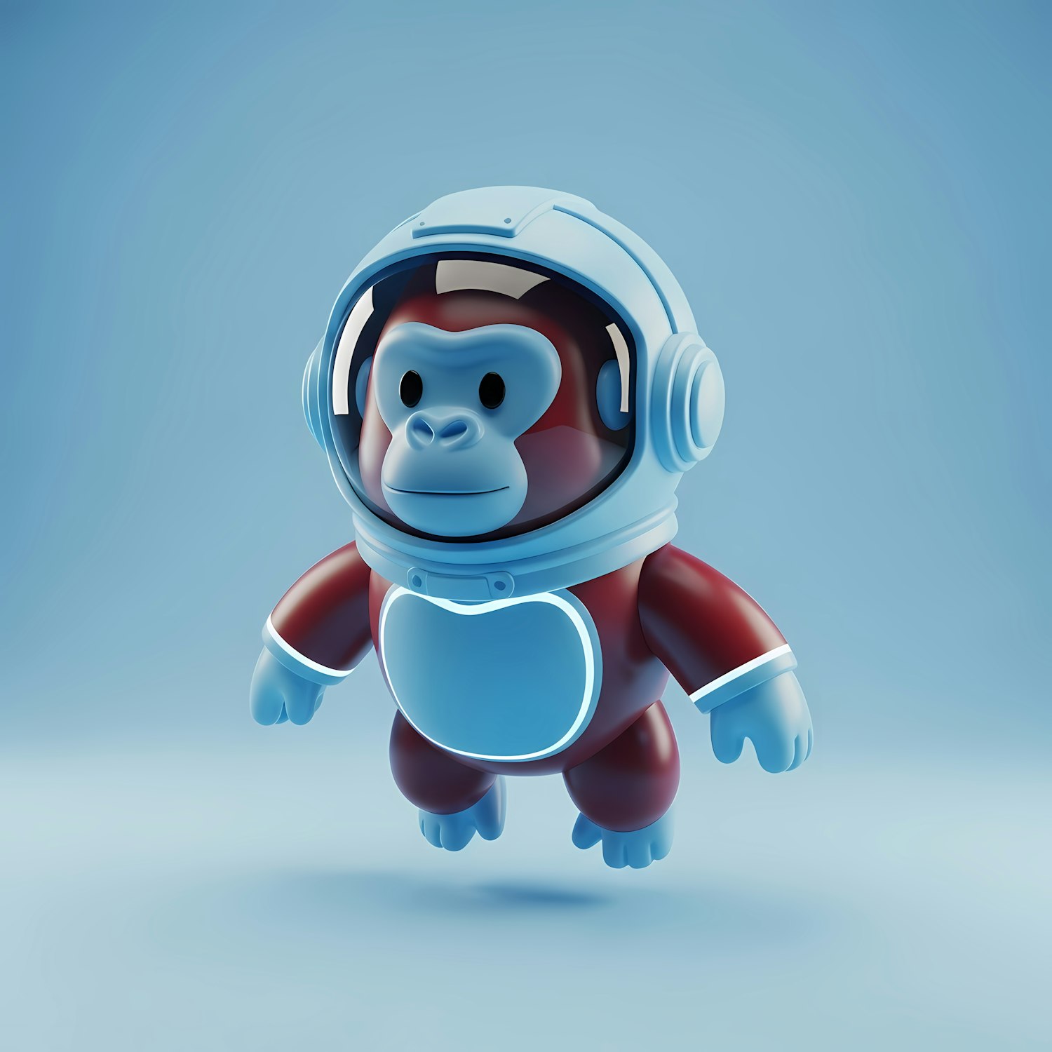 A cute 3D monkey in a futuristic astronaut suit, floating in a light blue background. Perfect for space-themed designs or fun projects.