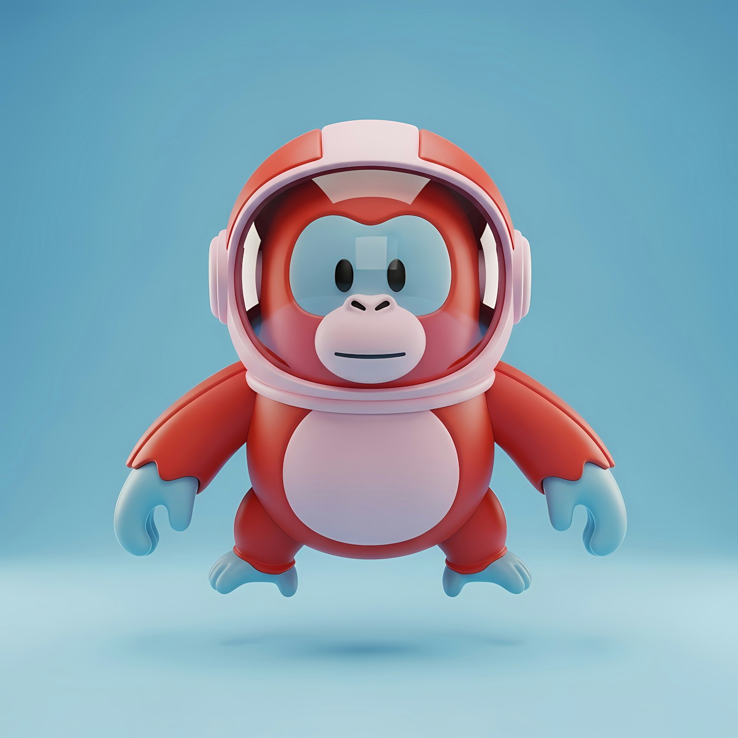 Adorable 3D cartoon monkey in a red astronaut helmet, floating in a blue background. Perfect for space-themed designs or fun projects.