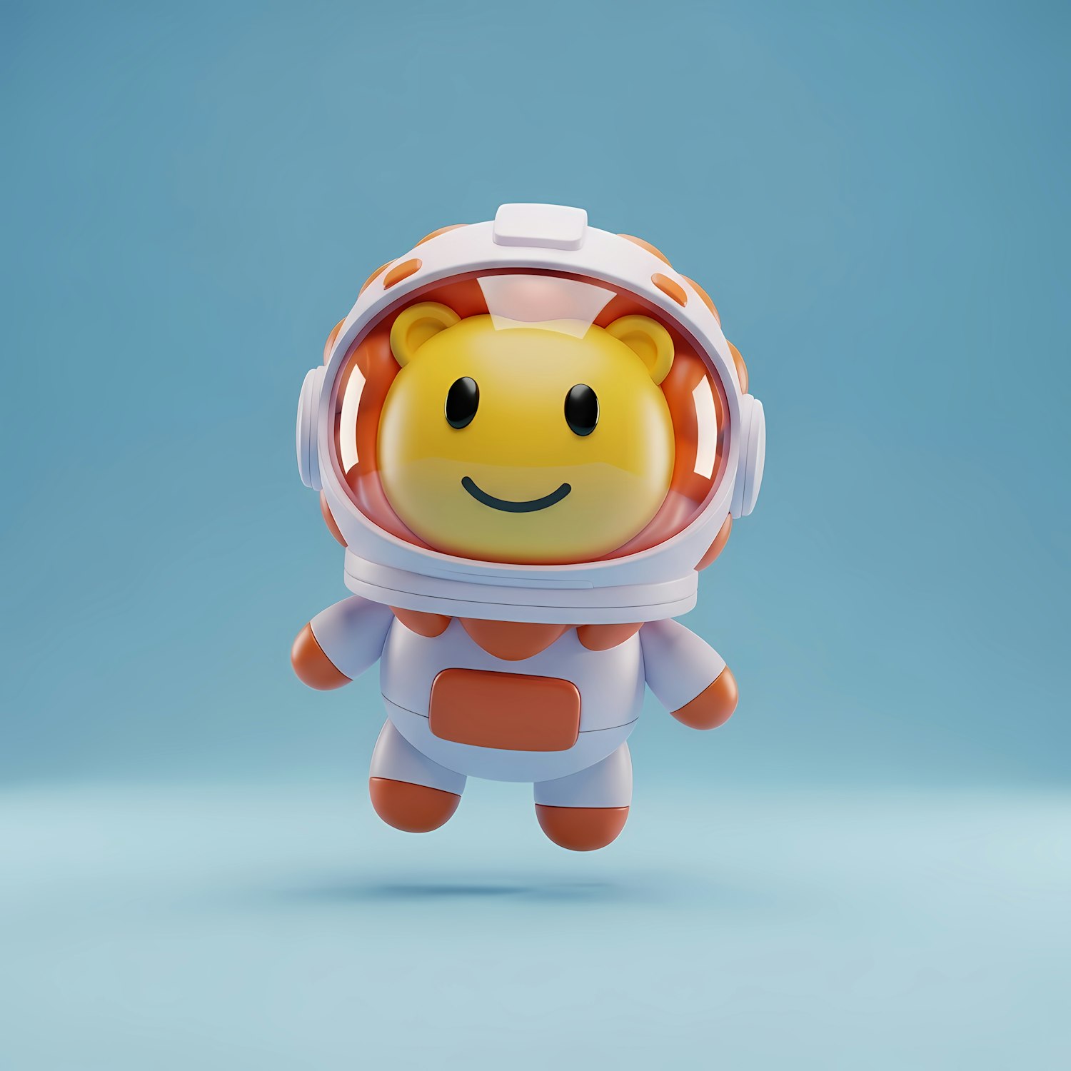 Adorable 3D bear astronaut in a white and orange spacesuit, floating against a light blue background. Perfect for space-themed designs!