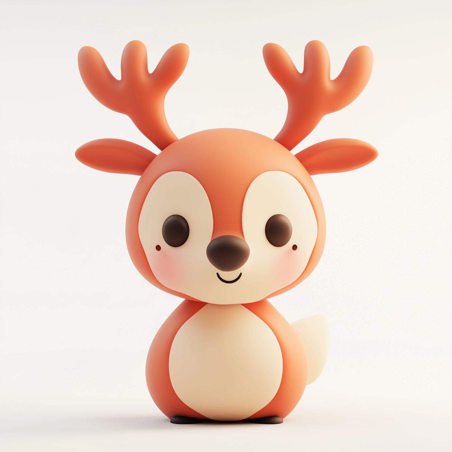 Adorable cartoon deer with big eyes and small antlers on a soft white background, perfect for children's decor or playful designs.