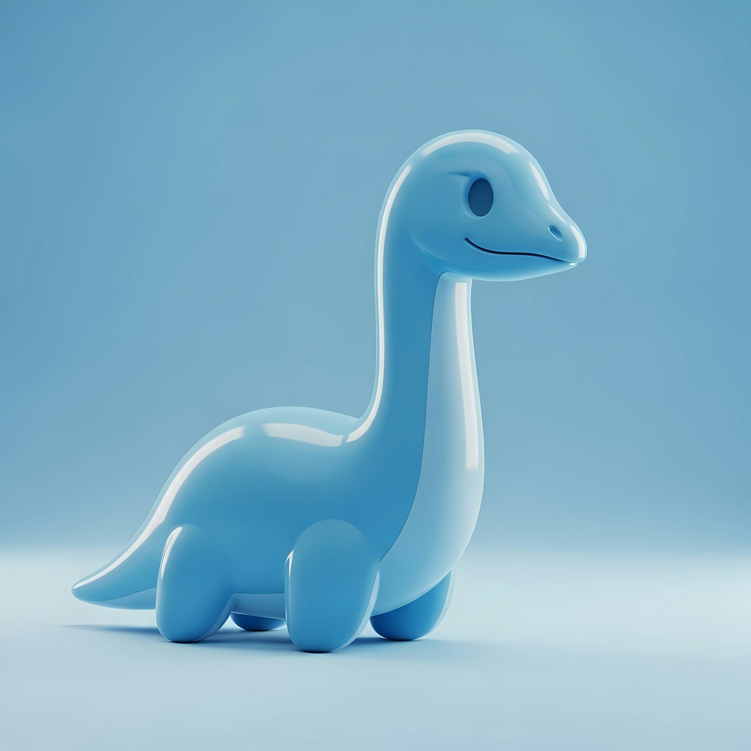 Adorable 3D-rendered blue dinosaur toy with a glossy finish, set against a light blue background. Perfect for kids' designs.