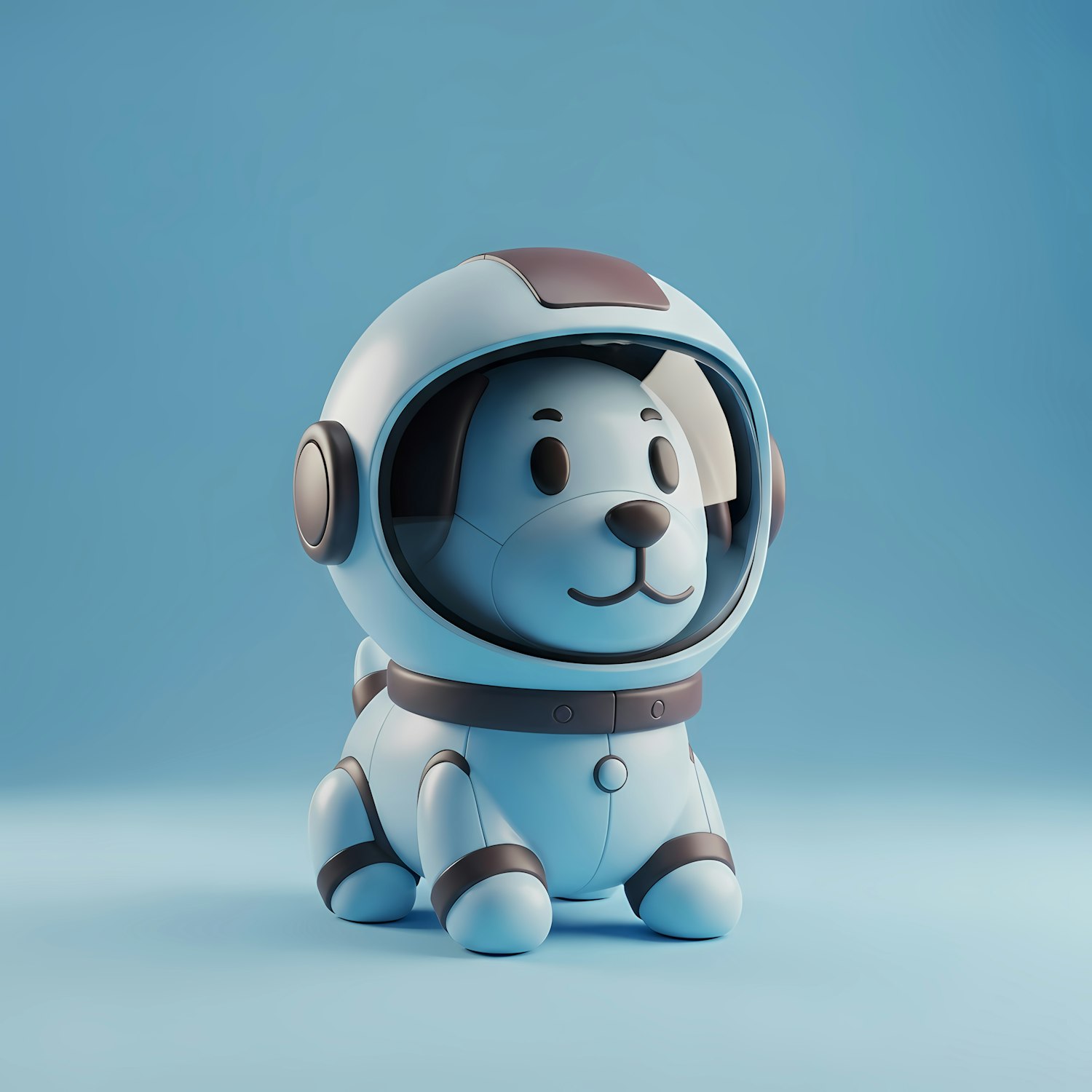 Adorable 3D illustration of a cartoon dog in a light blue astronaut suit, perfect for space-themed designs or children's content.